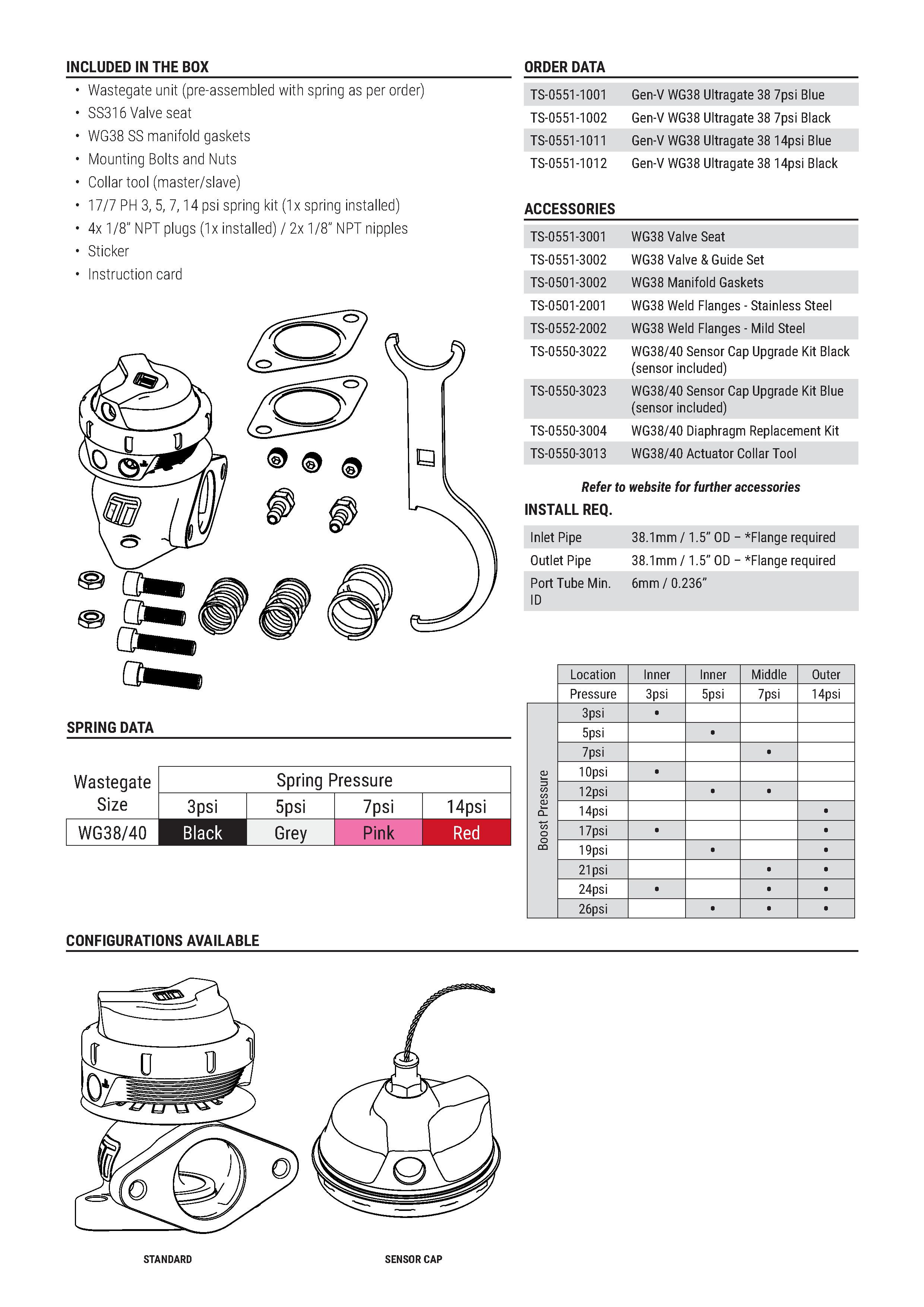 Zewnętrzny zawór wastegate GenV WG38 UltraGate38 jest sprawdzonym w sportach motorowych, ekonomicznym zewnętrznym zaworem wastegate - największym w gamie Turbosmart GenV i o najwyższym przepływie na świecie. Gen-V zapewnia szeroki zakres konfiguracji, wiodącą na świecie zwiększoną wydajność termiczną, odporność zmęczeniową i najlepszą w klasie wydajność przepływu dla optymalnej kontroli i długowieczności.