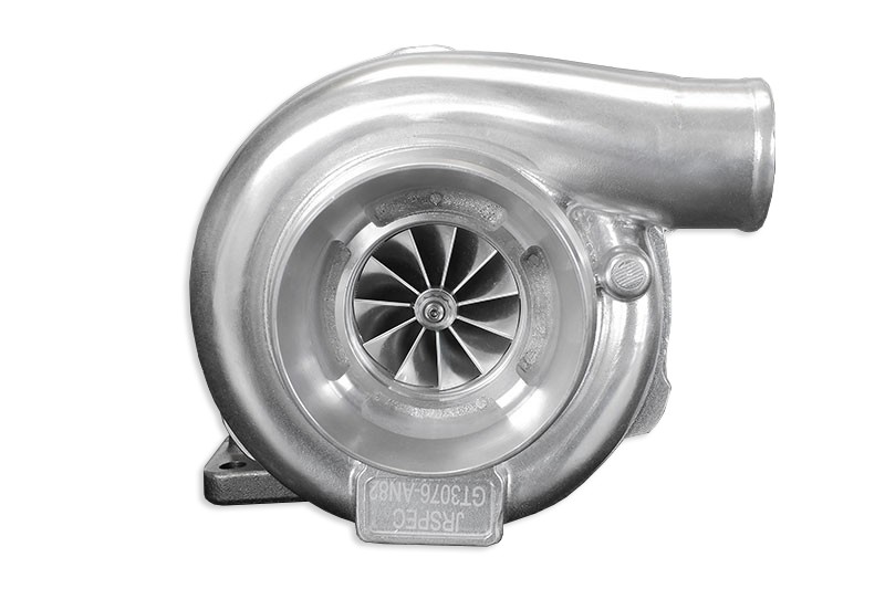 JRspec GTX3071R+ BB (GTX3077R) to turbosprężarka zbudowana w oparciu o wysokiej jakości łożyska kulkowe firmy NSK (dual ball bearings, made in Japan) oraz powiększone aż o 4mm w stosunku do seryjnego, kute koło kompresji CNC (billet wheel), pozwalająca uzyskać znacznie większe moce z silnika przy podobnym spoolu do zwykłej wersji. Składana w UE z idealnie spasowanych ze sobą części, wykonanych z najwyższej jakości materiałów przy użyciu najnowszych, precyzyjnych maszyn. Aż 5 etapów wyważania wirników sięgających 250.000 obr/min, dają gwarancję bezproblemowego użytkowania nawet w ekstremalnych warunkach, przy bardzo wysokich doładowaniach i temperaturach. Turbosrężarki JRspec są sprawdzone w motorsporcie, używane m.in. w dragu przez Tsunami (silniki 2x R30, turbo 2x JRspec GT42R JB, dające ok 2000km mocy), w drifcie przez Pawła Trelę (silnik 2JZ, turbo JRspec GTX3582R+ BB, ok 900km mocy), Kornela Prusa (silnik LS7, turbo JRspec GT45R JB, ponad 1000km mocy) i wielu mocnych samochodach streetowych. Zastosowane łożyska kulkowe wyraźnie poprawiają spool turbiny, dzięki czemu silnik znacznie żwawiej reaguje na pedał gazu, osiągając wysoki moment obrotowy przy dużo niższych obrotach, niż w przypadku turbin opartych o łożyska ślizgowe - niezwykle przydatne w drifcie oraz streecie, gdzie elastyczność silnika ma ogromne znaczenie. Wydajność: do 630HP Zastosowanie: 1.8-3.0l Łożyska: dual ball bearings (NSK made in Japan) Restryktor: dobrać odpowiednią średnicę do ciśnienia oleju (zalecany 0.9mm przy 5B) Wirnik ssący: inducer 52mm, exducer 77mm Wirnik wydechowy: 60mm Turbosprężarka składana w UE !!!Flansza kolektora i AR - T3 .63, Flansza downpipe - V-band