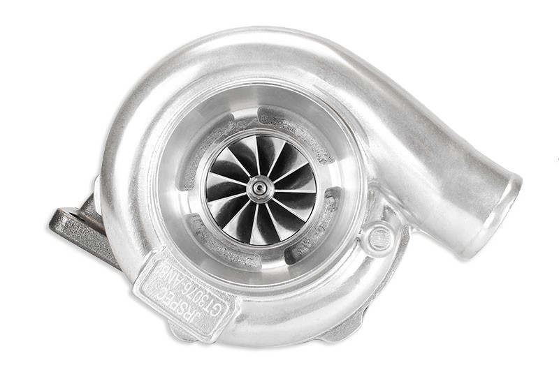 JRspec GTX3076R+ JB (GTX3080R) to turbosprężarka zbudowana w oparciu o wysokiej jakości łożyska ślizgowe (journal bearings) oraz powiększone aż o 4mm w stosunku do seryjnego, kute koło kompresji CNC (billet wheel), pozwalająca uzyskać znacznie większe moce z silnika przy podobnym spoolu do zwykłej wersji. Składana w UE z idealnie spasowanych ze sobą części, wykonanych z najwyższej jakości materiałów przy użyciu najnowszych, precyzyjnych maszyn. Aż 5 etapów wyważania wirników sięgających 250.000 obr/min, dają gwarancję bezproblemowego użytkowania nawet w ekstremalnych warunkach, przy bardzo wysokich doładowaniach i temperaturach. Turbosrężarki JRspec są sprawdzone w motorsporcie, używane m.in. w dragu przez Tsunami (silniki 2x R30, turbo 2x JRspec GT42R JB, dające ok 2000km mocy), w drifcie przez Pawła Trelę (silnik 2JZ, turbo JRspec GTX3582R+ BB, ok 900km mocy), Kornela Prusa (silnik LS7, turbo JRspec GT45R JB, ponad 1000km mocy) i wielu mocnych samochodach streetowych. Wydajność: do 670HP Zastosowanie: 2.0-3.0l Łożyska: floating bearings (made in Japan) Restryktor: dobrać odpowiednią średnicę do ciśnienia oleju (zalecany 1.8mm przy 5B) Wirnik ssący: inducer 58mm, exducer 80mm Wirnik wydechowy: 60mm Turbosprężarka składana w UE !!!Flansza kolektora i AR - T3 1.06, Flansza downpipe - 4-bolt