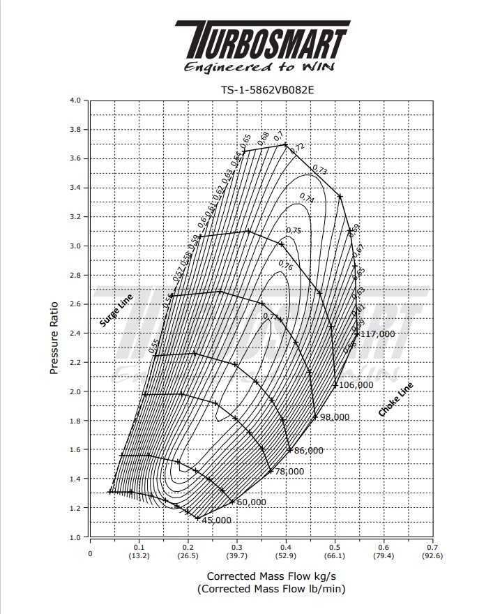 Mniejsza, lżejsza i szybsza - seria turbosprężarek Turbosmart TS-1 została opracowana w oparciu o nowoczesne materiały, konstrukcję i technikę produkcji, aby stworzyć gamę turbosprężarek, która spełnia wymagania zarówno sportów motorowych, jak i entuzjastów osiągów. TS-1 to turbosprężarki chłodzone olejem, ich obudowa wykonana jest z odgazowanej ciśnieniowo stali nierdzewnej, która gwarantuję większą trwałość i jakość. Unikalna konstrukcja łożyskowania, jak i wałka powoduje, iż turbosprężarka zapewnia bardzo szybki czas reakcji oraz zapewnia przy tym maksymalną wydajność, której wcześniej nie byłeś w stanie doświadczyć. Bardzo niska masa obrotowa unikalnego zespołu wirników, łożysk i wału jest dopasowana do agresywnej aerodynamiki sprężarki. Zapewnia to wysoki poziomu wydajności nawet przy niższych prędkościach obrotowych. Unikalne koło turbiny T14 Inconel zapewnia stabline utrzymanie doładowania przy dużych obciążeniach. W serii turbosprężarek TS-1 najważniejszym aspektem było dążenie do osiągnięcia mocy poprzez zmniejszenie ciśnienia wstecznego i wysokowydajny wirnik turbiny - przy jednoczesnym zachowaniu mniejszych rozmiarów, niższej masy i szybszej reakcji niż w przypadku innych rozwiązań dostępnych na rynku. Dostępne w wersjach: -TS-1 turbosprężarki chłodzone olejem -TS-2 turbosprężarki chłodzone olejem i wodą -V-Band, flasze T3 i T4 -Odwrócona rotacja (wybrane rozmiary) -Różne opcje AR -Dostępne opcje z wewnętrznym i zewnętrznym zaworem upustowym Cechy: -Bardzo szybkie generowanie doładowania -Agresywna aerodynamika z kołem kompresji 7+7 -Lekka obudowa turbiny - odlewana ciśnieniowo ze stali nierdzewnej 310s -Lekkia aluminiowa obudowa koła kompresji -Obudowa zaprojektowana w oparciu o CFD dla zoptymalizowania AR i przepływu -Koło turbiny T14 Inconel odporne na ekstremalne wartości temperatury spalin -Opatentowany system podwójnego łożyska ceramicznego Specyfikacja: Potencjał: 750 KM Wlot sprężarki: 4″ / 101.6mmWirnik sprężarki: 58mmWlot turbiny: T3Wirnik turbiny: 62mmAR turbiny: 0.63Wylot turbiny: V-Band (3.00″)Waga: 6.06kg / 13.3lbs