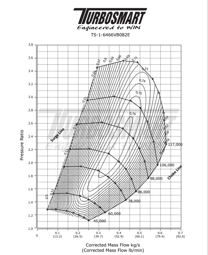 Mniejsza, lżejsza i szybsza - seria turbosprężarek Turbosmart TS-1 została opracowana w oparciu o  nowoczesne materiały, konstrukcję i technikę produkcji, aby stworzyć gamę turbosprężarek, która spełnia wymagania zarówno sportów motorowych, jak i entuzjastów osiągów. TS-1 to turbosprężarki chłodzone olejem, ich obudowa wykonana jest z odgazowanej ciśnieniowo stali nierdzewnej, która gwarantuję większą trwałość i jakość. Unikalna konstrukcja łożyskowania, jak i wałka powoduje, iż turbosprężarka zapewnia bardzo szybki czas reakcji oraz zapewnia przy tym maksymalną wydajność, której wcześniej nie byłeś w stanie doświadczyć. Bardzo niska masa obrotowa unikalnego zespołu wirników, łożysk i wału jest dopasowana do agresywnej aerodynamiki sprężarki. Zapewnia to wysoki poziomu wydajności nawet przy niższych prędkościach obrotowych. Unikalne koło turbiny T14 Inconel zapewnia stabline utrzymanie doładowania przy dużych obciążeniach. W serii turbosprężarek TS-1 najważniejszym aspektem było dążenie do osiągnięcia mocy poprzez zmniejszenie ciśnienia wstecznego i wysokowydajny wirnik turbiny - przy jednoczesnym zachowaniu mniejszych rozmiarów, niższej masy i szybszej reakcji niż w przypadku innych rozwiązań dostępnych na rynku. Dostępne w wersjach: -TS-1 turbosprężarki chłodzone olejem -TS-2 turbosprężarki chłodzone olejem i wodą -V-Band, flasze T3 i T4 -Odwrócona rotacja (wybrane rozmiary) -Różne opcje AR -Dostępne opcje z wewnętrznym i zewnętrznym zaworem upustowym Cechy: -Bardzo szybkie generowanie doładowania  -Agresywna aerodynamika z kołem kompresji 7+7 -Lekka obudowa turbiny - odlewana ciśnieniowo ze stali nierdzewnej 310s -Lekkia aluminiowa obudowa koła kompresji -Obudowa zaprojektowana w oparciu o CFD dla zoptymalizowania AR i przepływu -Koło turbiny T14 Inconel odporne na ekstremalne wartości temperatury spalin -Opatentowany system podwójnego łożyska ceramicznego Specyfikacja: Potencjał: 930 KM Wlot sprężarki: 4″ / 101.6mmWirnik sprężarki: 64mmWlot turbiny: V-Band (2.25″)Wirnik turbiny: 66mmAR turbiny: 0.82Wylot turbiny: V-Band (3.00″)Waga: 6.06kg / 13.3lbs