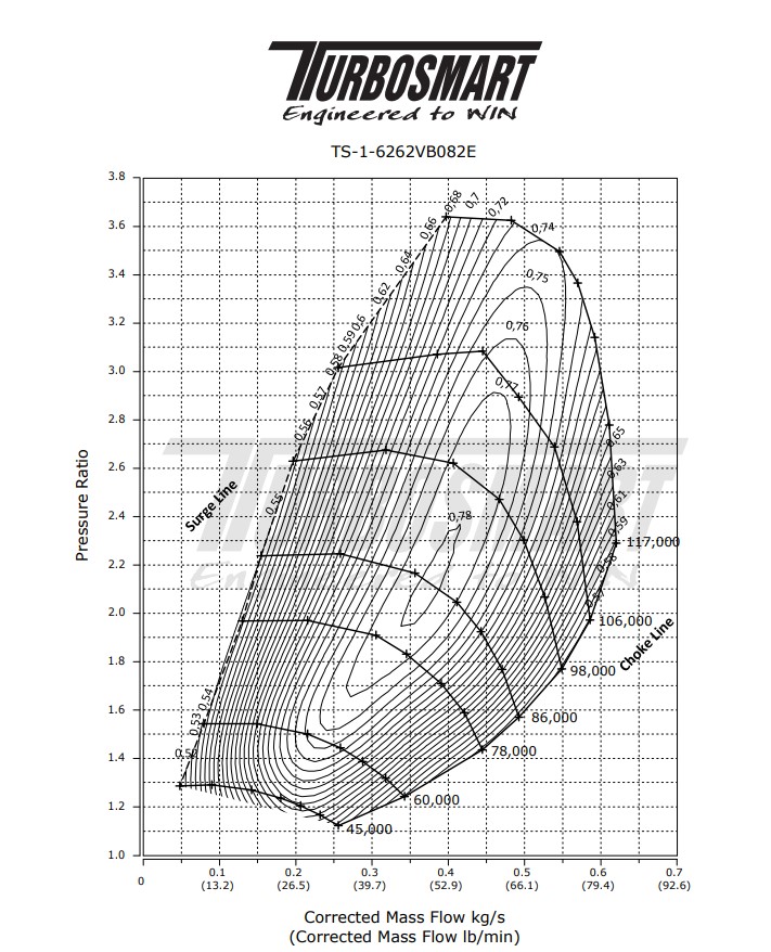 Mniejsza, lżejsza i szybsza - seria turbosprężarek Turbosmart TS-2 została opracowana w oparciu o  nowoczesne materiały, konstrukcję i technikę produkcji, aby stworzyć gamę turbosprężarek, która spełnia wymagania zarówno sportów motorowych, jak i entuzjastów osiągów. TS-2 to turbosprężarki chłodzone wodą i olejem, ich obudowa wykonana jest z odgazowanej ciśnieniowo stali nierdzewnej, która gwarantuję większą trwałość i jakość. Unikalna konstrukcja łożyskowania, jak i wałka powoduje, iż turbosprężarka zapewnia bardzo szybki czas reakcji oraz zapewnia przy tym maksymalną wydajność, której wcześniej nie byłeś w stanie doświadczyć. Bardzo niska masa obrotowa unikalnego zespołu wirników, łożysk i wału jest dopasowana do agresywnej aerodynamiki sprężarki. Zapewnia to wysoki poziomu wydajności nawet przy niższych prędkościach obrotowych. Unikalne koło turbiny T14 Inconel zapewnia stabline utrzymanie doładowania przy dużych obciążeniach. W serii turbosprężarek TS-2 najważniejszym aspektem było dążenie do osiągnięcia mocy poprzez zmniejszenie ciśnienia wstecznego i wysokowydajny wirnik turbiny - przy jednoczesnym zachowaniu mniejszych rozmiarów, niższej masy i szybszej reakcji niż w przypadku innych rozwiązań dostępnych na rynku. Dostępne w wersjach: -TS-1 turbosprężarki chłodzone olejem -TS-2 turbosprężarki chłodzone olejem i wodą -V-Band, flasze T3 i T4 -Odwrócona rotacja (wybrane rozmiary) -Różne opcje AR -Dostępne opcje z wewnętrznym i zewnętrznym zaworem upustowym Cechy: -Bardzo szybkie generowanie doładowania  -Agresywna aerodynamika z kołem kompresji 7+7 -Lekka obudowa turbiny - odlewana ciśnieniowo ze stali nierdzewnej 310s -Lekkia aluminiowa obudowa koła kompresji -Obudowa zaprojektowana w oparciu o CFD dla zoptymalizowania AR i przepływu -Koło turbiny T14 Inconel odporne na ekstremalne wartości temperatury spalin -Opatentowany system podwójnego łożyska ceramicznego Specyfikacja: Potencjał: 800 KM Wlot sprężarki: 4″ / 101.6mmWirnik sprężarki: 62mmWlot turbiny: V-Band (2.25″)Wirnik turbiny: 62mmAR turbiny: 0.82Wylot turbiny: V-Band (3.00″)Waga: 6.06kg / 13.3lbs