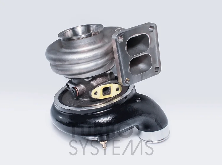 TurboSystems HTX4064B1 to wysokowydajna turbosprężarka przeznaczona do dużych obciążeń i wysokich temperatur. Obudowa została wykonana ze stali nierdzewnej, koło sprężarki obrobione z litego aluminium sprawia, że jest to trwałe i wydajne rozwiązanie przeznaczone do użytku w motosporcie. Prosty wylot powietrza po stornie sprężarki, na innym ogłoszeniu dostępna opcja z kolankiem 90°. Zakres mocy: 550-750 KM;Pojemność skokowa silnika: 2-3,5 l Strona sprężarki: Koło kompresora: wzmocnione 64/79mm 10+0 łopatek obrabianych maszynowo z litego aluminium;Wlot: 101mm (4");Wylot powietrza: 63 mm (2,5 cala); Rdzeń: Łożyska: podwójne ceramiczne łożyska kulkowe;Chłodzenie: chłodzenie wodą z 2 portami M14x1,5;Smarowanie: wlot oleju AN4 ze zintegrowanym restryktorem oleju; Strona turbiny: Obudowa: twin scroll, AR: 0,90Koło turbiny: 76/64mm 10 łopatekFlansza: T4 Twin scrollPrzyłącze wydechu: V-band 3" W zestawie flansza spływu oleju oraz obejma v-band po stronie wydechowej