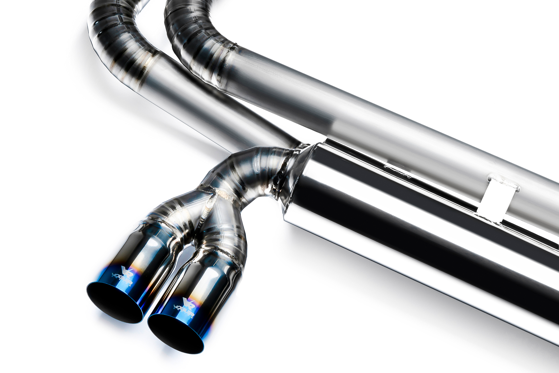 Tytanowy układ wydechowy BMW M3 E46 Producent: Vogler Racing Tytanowy wydech Vogler Racing zaprojektowany od podstaw z odpowiednio wyliczonymi średnicami rur oraz idealnie dobranymi rozmiarami tłumików w celu zwiększenia mocy i momentu obrotowego silnika. Wydech zapewnia maksymalną redukcją masy względem układów wydechowych ze stali nierdzewnej, gwarantując przy tym znakomitą wytrzymałość. Dzięki swojej konstrukcji wpływa na obniżenie ciśnienia zwrotnego w układzie wydechowym. Wydechy Vogler Racing znacząco poprawiają również wizualne walory samochodu oraz przede wszystkim jakość emitowanego przez wydech dźwięku. Tytan w porównaniu do stali jest odporny na korozję, bardzo lekki, a przy tym niezwykle wytrzymały. Na skutek kontaktu tytanu z tlenem na jego powierzchni tworzy się pasywacyjna warstwa tlenku tytanu o grubości ok. 2 nm, która dodatkowo zwiększa odporność na korozję. Niska masa, wysoka wytrzymałość w stosunku do gęstości materiału oraz wysoka temperatura topnienia sprawiają, że tytan używany jest do budowy najnowocześniejszych statków powietrznych, w tym myśliwców stealth i promów kosmicznych. Parametry:Waga: 5,74 kg Średnica orurowania: 2,35" (60mm) Średnica końcówki: 2,75" (70mm) Rodzaj wejścia: flansza 2,5", 2 śruby