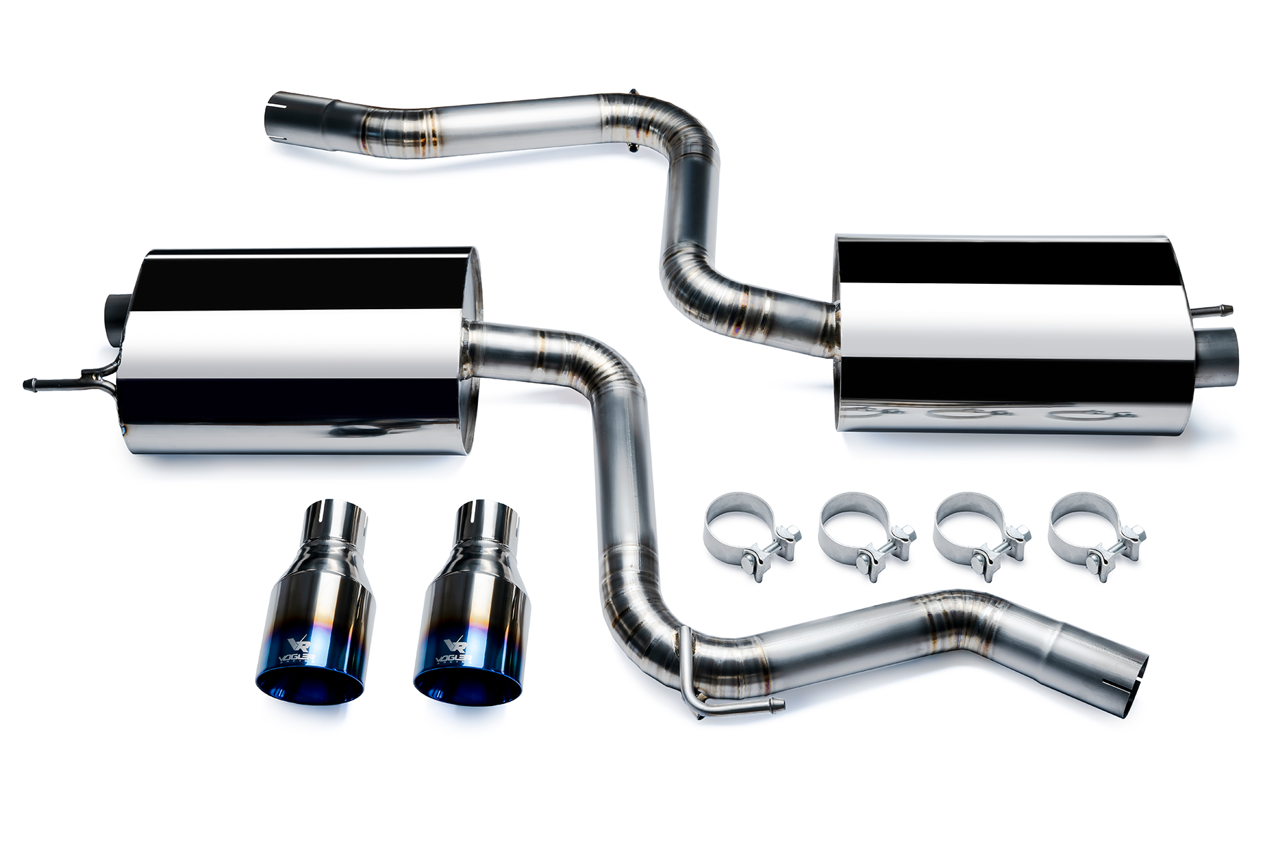 Tytanowy układ wydechowy Ford Mustang 2.3 Catback Producent: Vogler Racing Tytanowy wydech Vogler Racing zaprojektowany od podstaw z odpowiednio wyliczonymi średnicami rur oraz idealnie dobranymi rozmiarami tłumików w celu zwiększenia mocy i momentu obrotowego silnika. Wydech zapewnia maksymalną redukcją masy względem układów wydechowych ze stali nierdzewnej, gwarantując przy tym znakomitą wytrzymałość. Dzięki swojej konstrukcji wpływa na obniżenie ciśnienia zwrotnego w układzie wydechowym. Wydechy Vogler Racing znacząco poprawiają również wizualne walory samochodu oraz przede wszystkim jakość emitowanego przez wydech dźwięku. Tytan w porównaniu do stali jest odporny na korozję, bardzo lekki, a przy tym niezwykle wytrzymały. Na skutek kontaktu tytanu z tlenem na jego powierzchni tworzy się pasywacyjna warstwa tlenku tytanu o grubości ok. 2 nm, która dodatkowo zwiększa odporność na korozję. Niska masa, wysoka wytrzymałość w stosunku do gęstości materiału oraz wysoka temperatura topnienia sprawiają, że tytan używany jest do budowy najnowocześniejszych statków powietrznych, w tym myśliwców stealth i promów kosmicznych. Parametry:Waga: 10,94 kg Średnica orurowania: 2,35" (60mm) Średnica końcówki: 4" (102mm) Średnica wejścia: 2,25" (57mm)