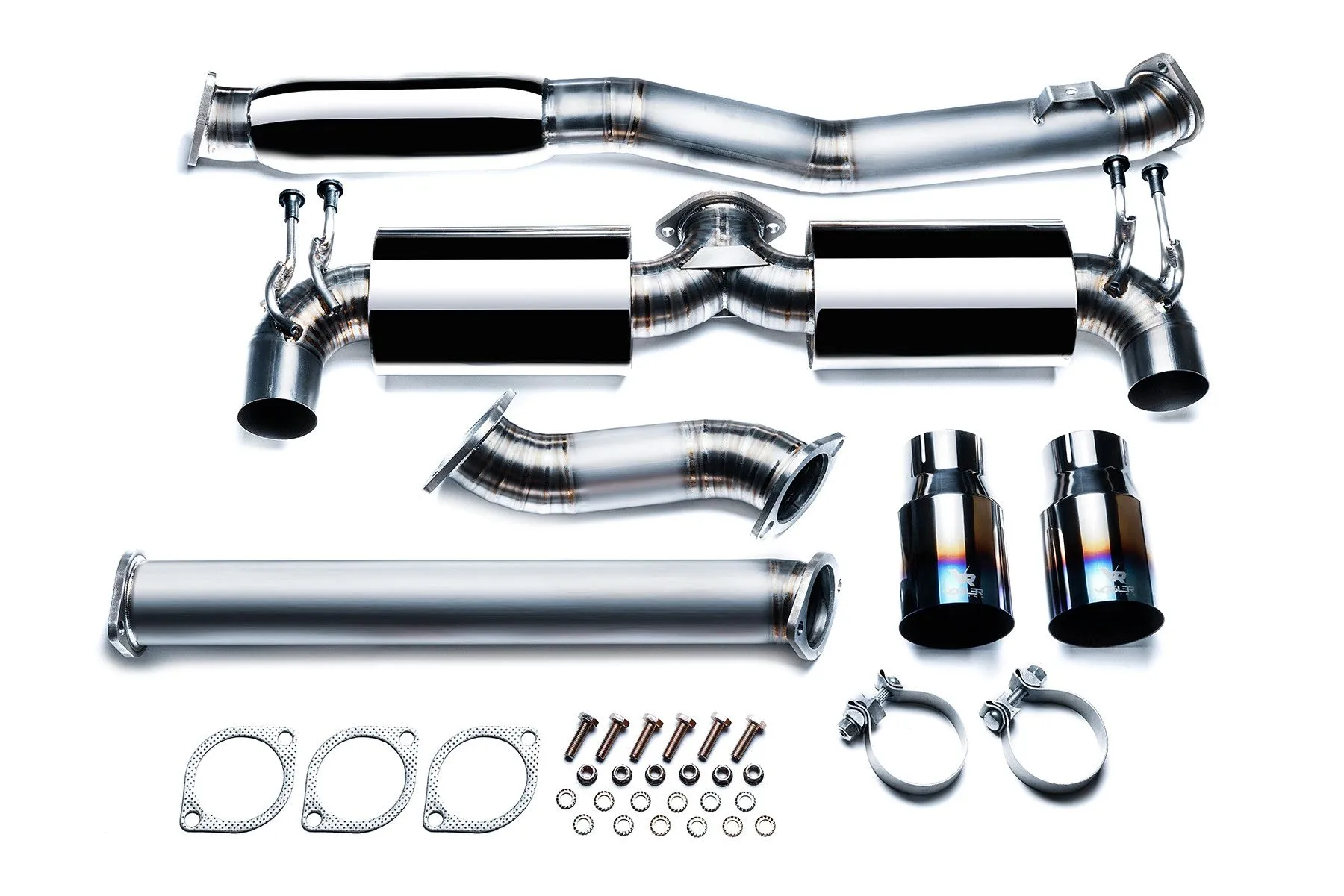 Tytanowy wydech Vogler Racing zaprojektowany od podstaw z odpowiednio wyliczonymi średnicami rur oraz idealnie dobranymi rozmiarami tłumików w celu zwiększenia mocy i momentu obrotowego silnika. Wydech zapewnia maksymalną redukcją masy względem układów wydechowych ze stali nierdzewnej, gwarantując przy tym znakomitą wytrzymałość. Dzięki swojej konstrukcji wpływa na obniżenie ciśnienia zwrotnego w układzie wydechowym. Wydechy Vogler Racing znacząco poprawiają również wizualne walory samochodu oraz przede wszystkim jakość emitowanego przez wydech dźwięku. Tytan w porównaniu do stali jest odporny na korozję, bardzo lekki, a przy tym niezwykle wytrzymały. Na skutek kontaktu tytanu z tlenem na jego powierzchni tworzy się pasywacyjna warstwa tlenku tytanu o grubości ok. 2 nm, która dodatkowo zwiększa odporność na korozję. Niska masa, wysoka wytrzymałość w stosunku do gęstości materiału oraz wysoka temperatura topnienia sprawiają, że tytan używany jest do budowy najnowocześniejszych statków powietrznych, w tym myśliwców stealth i promów kosmicznych.