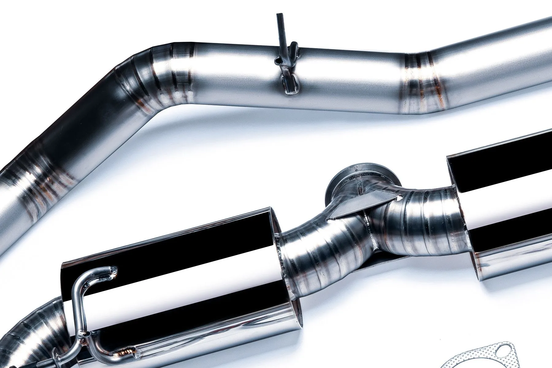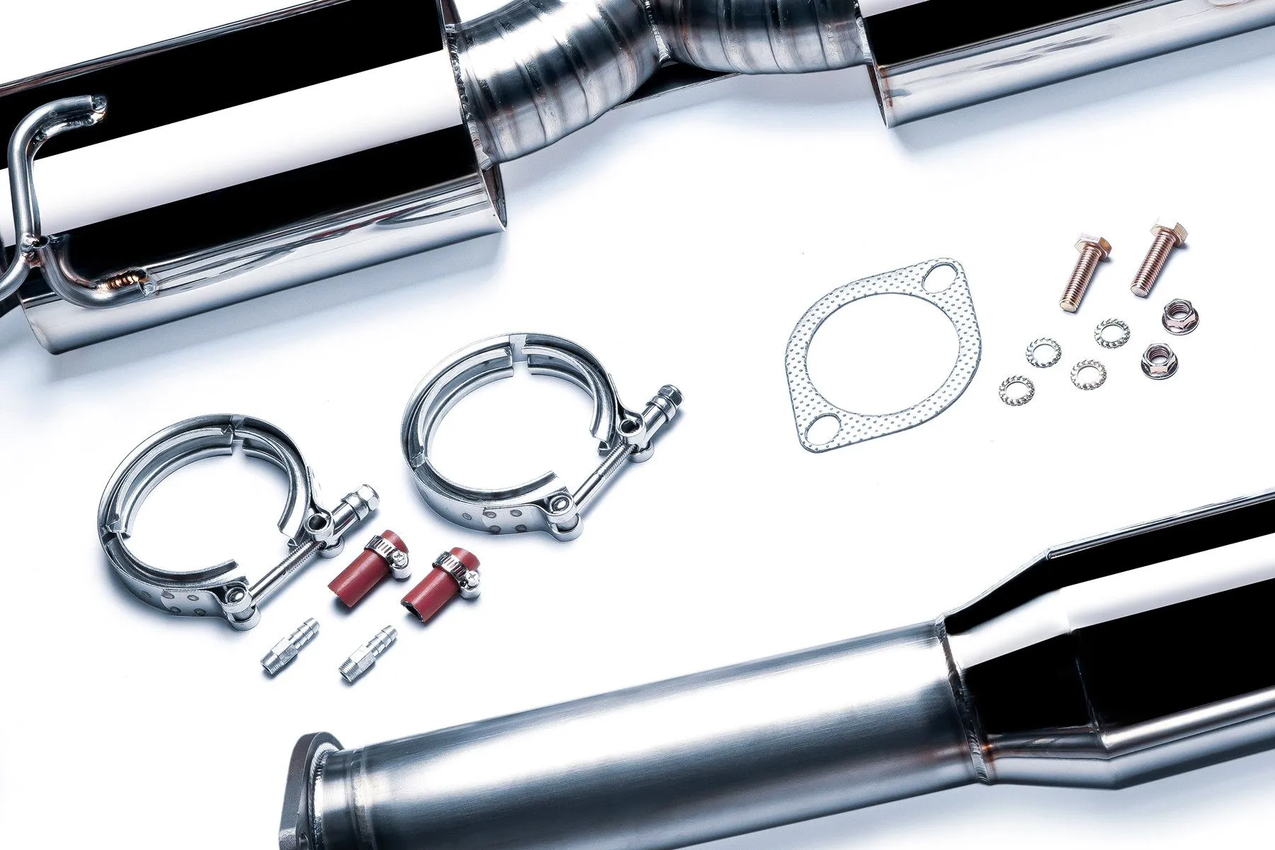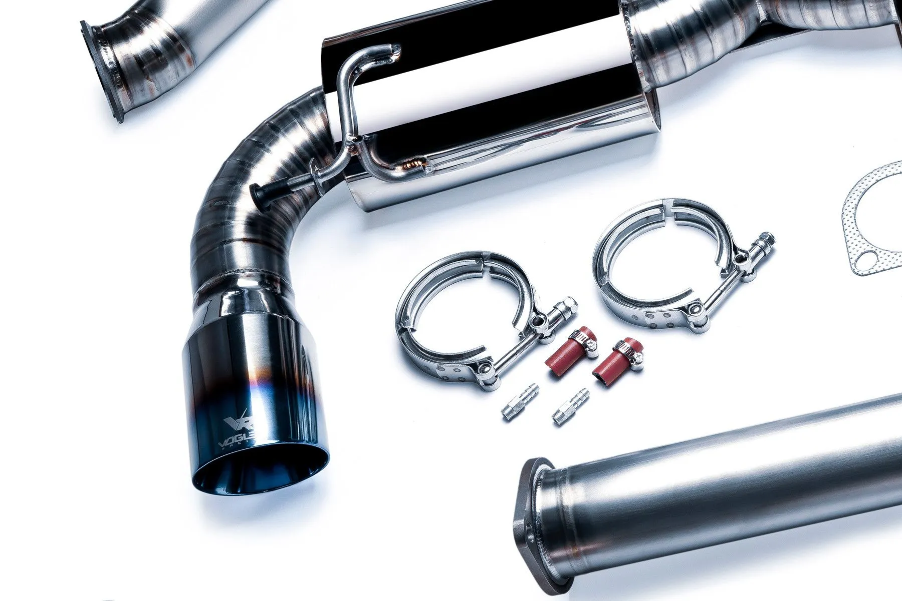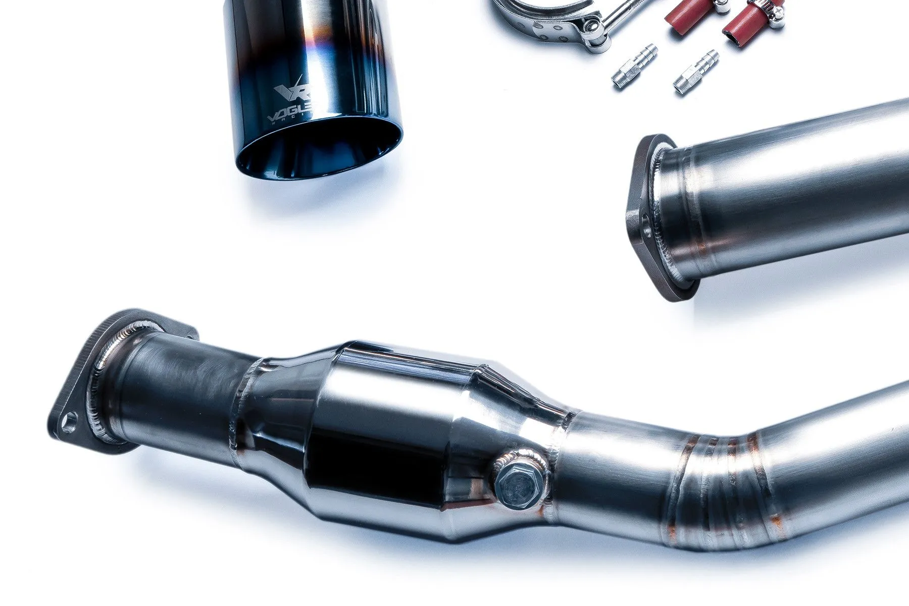 Tytanowy układ wydechowy Subaru BRZ Toyota GT86 Producent: Vogler Racing Tytanowy wydech Vogler Racing zaprojektowany od podstaw z odpowiednio wyliczonymi średnicami rur oraz idealnie dobranymi rozmiarami tłumików w celu zwiększenia mocy i momentu obrotowego silnika. Wydech zapewnia maksymalną redukcją masy względem układów wydechowych ze stali nierdzewnej, gwarantując przy tym znakomitą wytrzymałość. Dzięki swojej konstrukcji wpływa na obniżenie ciśnienia zwrotnego w układzie wydechowym. Wydechy Vogler Racing znacząco poprawiają również wizualne walory samochodu oraz przede wszystkim jakość emitowanego przez wydech dźwięku. Tytan w porównaniu do stali jest odporny na korozję, bardzo lekki, a przy tym niezwykle wytrzymały. Na skutek kontaktu tytanu z tlenem na jego powierzchni tworzy się pasywacyjna warstwa tlenku tytanu o grubości ok. 2 nm, która dodatkowo zwiększa odporność na korozję. Niska masa, wysoka wytrzymałość w stosunku do gęstości materiału oraz wysoka temperatura topnienia sprawiają, że tytan używany jest do budowy najnowocześniejszych statków powietrznych, w tym myśliwców stealth i promów kosmicznych. Parametry:Waga: 9,6 kg Średnica orurowania: 3" (76mm) Średnica końcówki: 4" (102mm) Rodzaj wejścia: flansza 3", 2 śruby