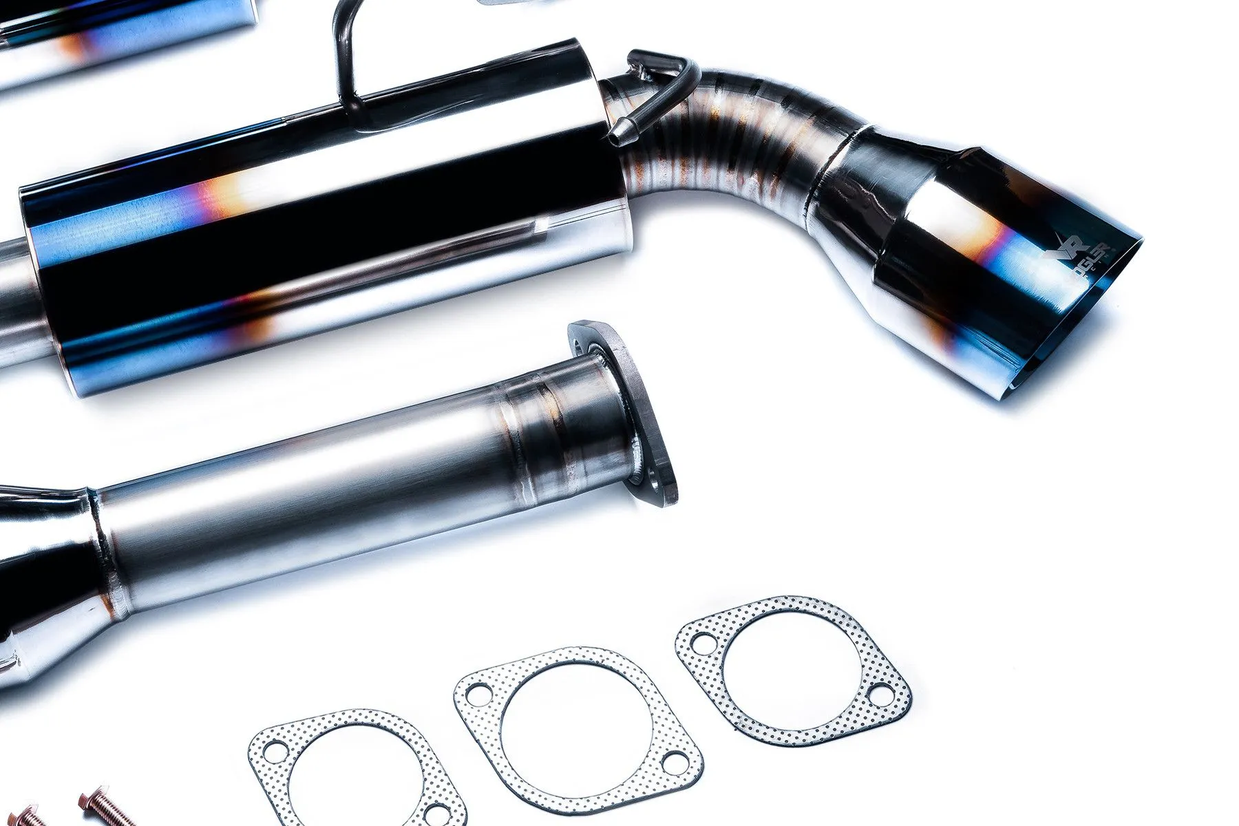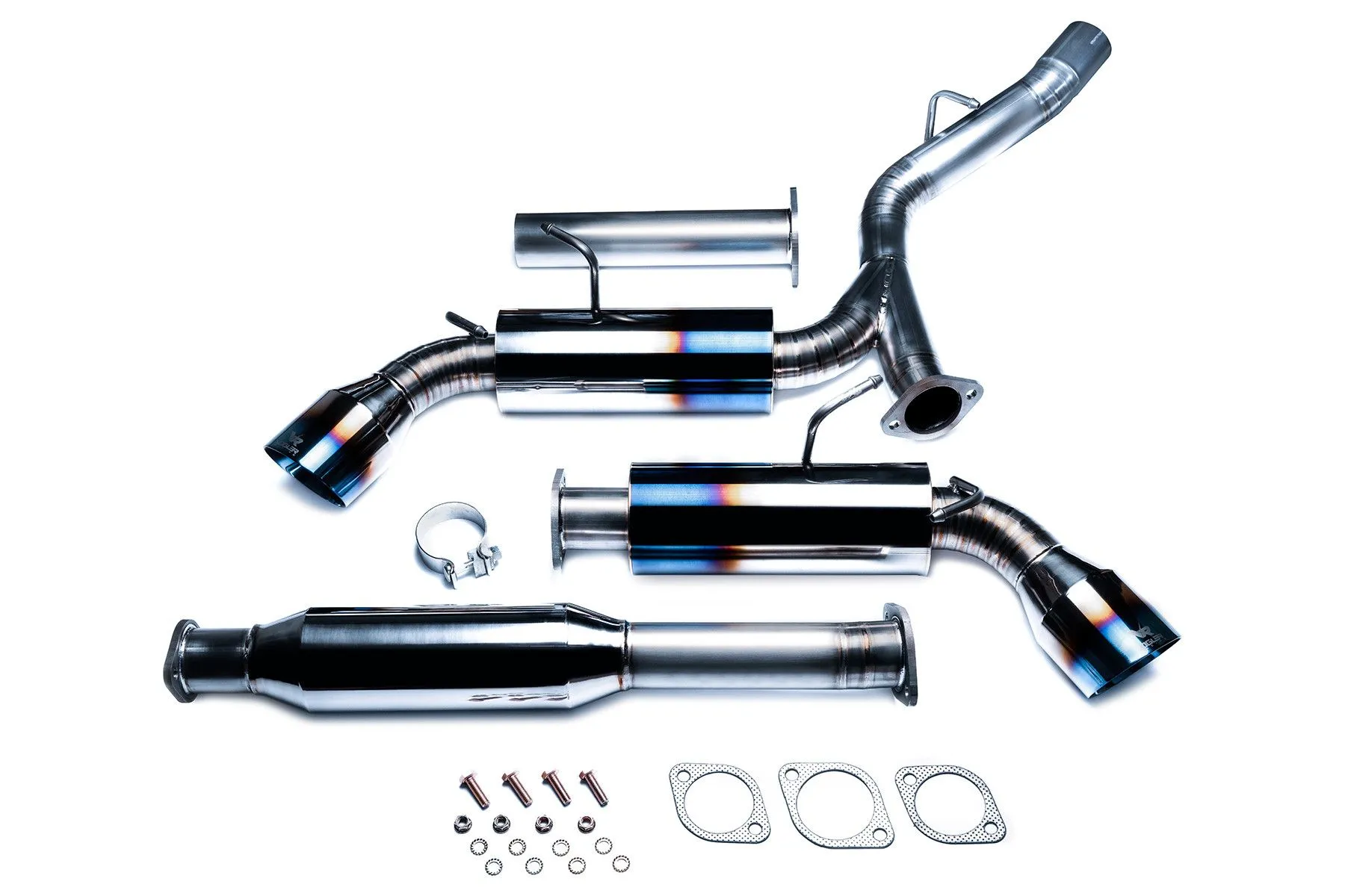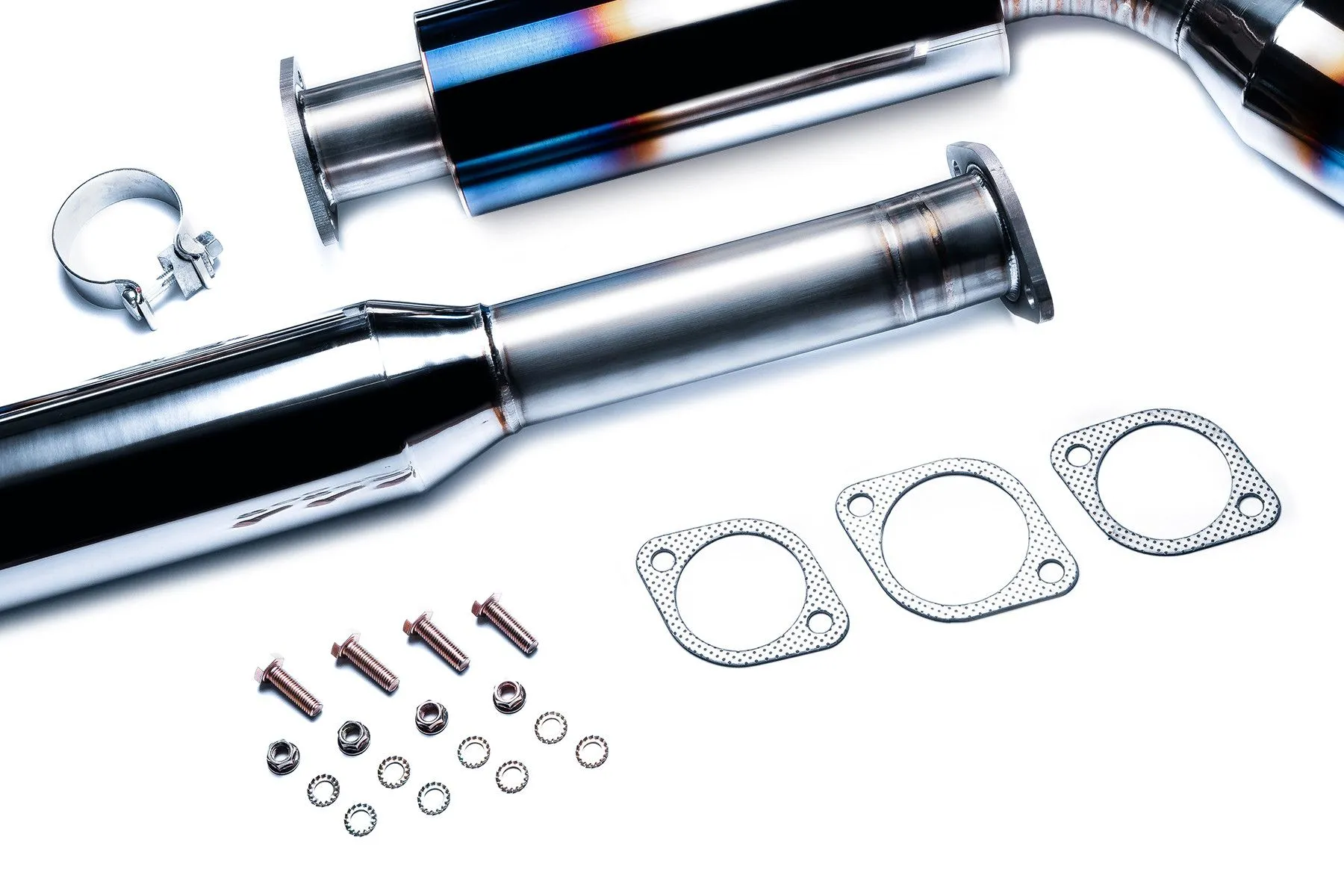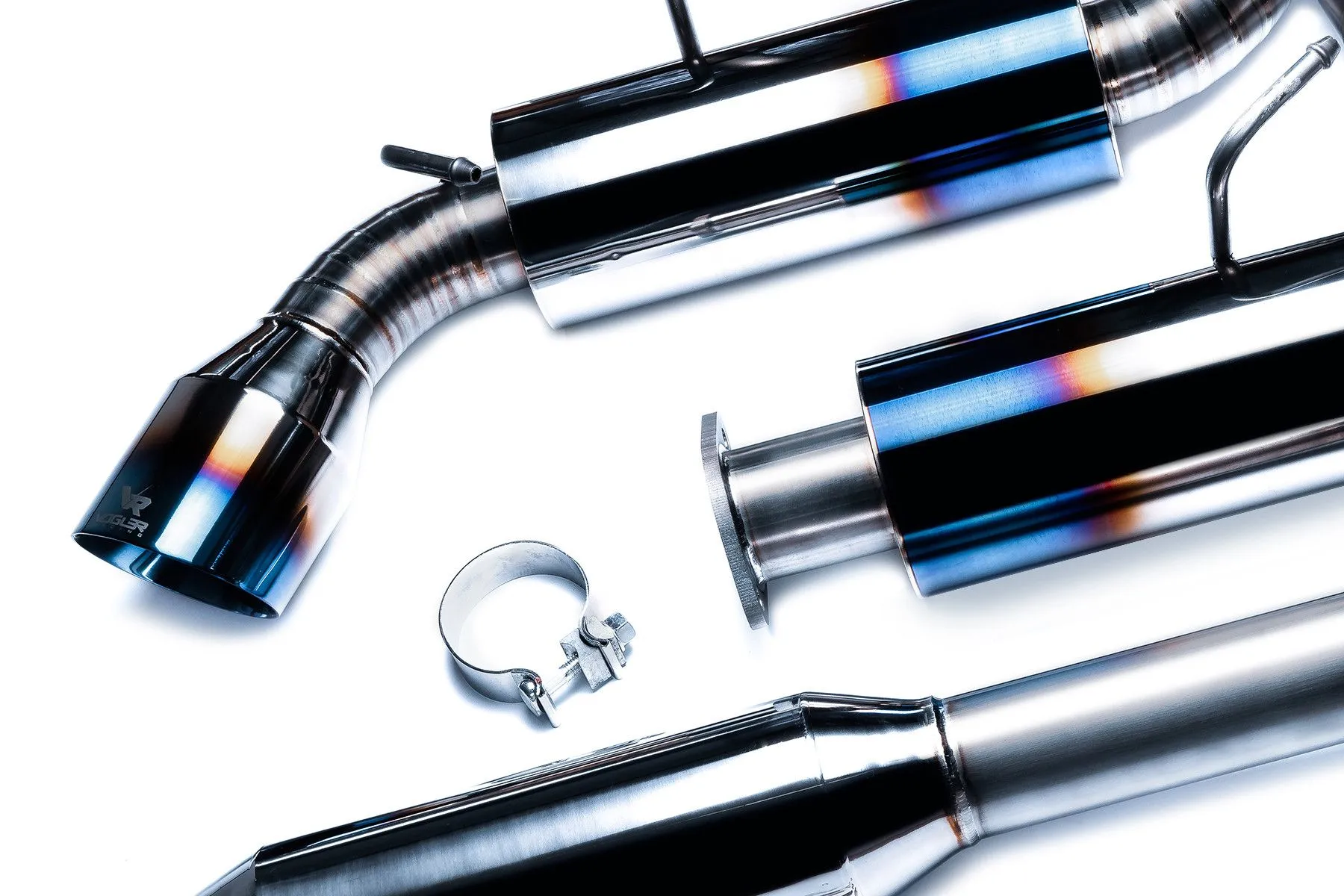 Tytanowy układ wydechowy Toyota GT86 Producent: Vogler Racing Tytanowy wydech Vogler Racing zaprojektowany od podstaw z odpowiednio wyliczonymi średnicami rur oraz idealnie dobranymi rozmiarami tłumików w celu zwiększenia mocy i momentu obrotowego silnika. Wydech zapewnia maksymalną redukcją masy względem układów wydechowych ze stali nierdzewnej, gwarantując przy tym znakomitą wytrzymałość. Dzięki swojej konstrukcji wpływa na obniżenie ciśnienia zwrotnego w układzie wydechowym. Wydechy Vogler Racing znacząco poprawiają również wizualne walory samochodu oraz przede wszystkim jakość emitowanego przez wydech dźwięku. Tytan w porównaniu do stali jest odporny na korozję, bardzo lekki, a przy tym niezwykle wytrzymały. Na skutek kontaktu tytanu z tlenem na jego powierzchni tworzy się pasywacyjna warstwa tlenku tytanu o grubości ok. 2 nm, która dodatkowo zwiększa odporność na korozję. Niska masa, wysoka wytrzymałość w stosunku do gęstości materiału oraz wysoka temperatura topnienia sprawiają, że tytan używany jest do budowy najnowocześniejszych statków powietrznych, w tym myśliwców stealth i promów kosmicznych. Parametry:Waga: 7,6 kg Średnica orurowania: 2,75" (70mm) Średnica końcówki: 4,5" (114mm) Rodzaj wejścia: flansza 3", 2 śruby