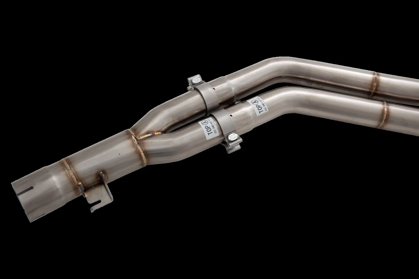 Introducing the revolutionary Xforce Varex cat back exhaust system designed specifically for the BMW F22 M135i. Unleash the true potential of your vehicle with this high-performance exhaust upgrade. With a seamless bolt-on installation, this system directly connects to the factory downpipe, ensuring a perfect fit. The twin 2.5″ center section provides exceptional ground clearance while optimizing exhaust flow. The flow then converges into a single 3″ pipe, entering the Varex muffler, resulting in an aggressive and throaty exhaust note that commands attention. Crafted with precision and durability in mind, the Xforce Varex cat back exhaust system is built to withstand the test of time. The system features dual 4″ tip outlets, adding a touch of style and distinction to your BMW F22 M135i. Experience the exhilaration of improved performance and an unmistakable sound as you accelerate through the gears. Upgrade your BMW F22 M135i with the Xforce Varex cat back exhaust system and make a statement on the road. Upgrade today and take your driving experience to new heights. OEM size splitting to twin 2.5″ then collecting to 3″ at rear Slip joint connections Brushed 304 stainless steel Varex rear muffler 4″ 304 polished tips