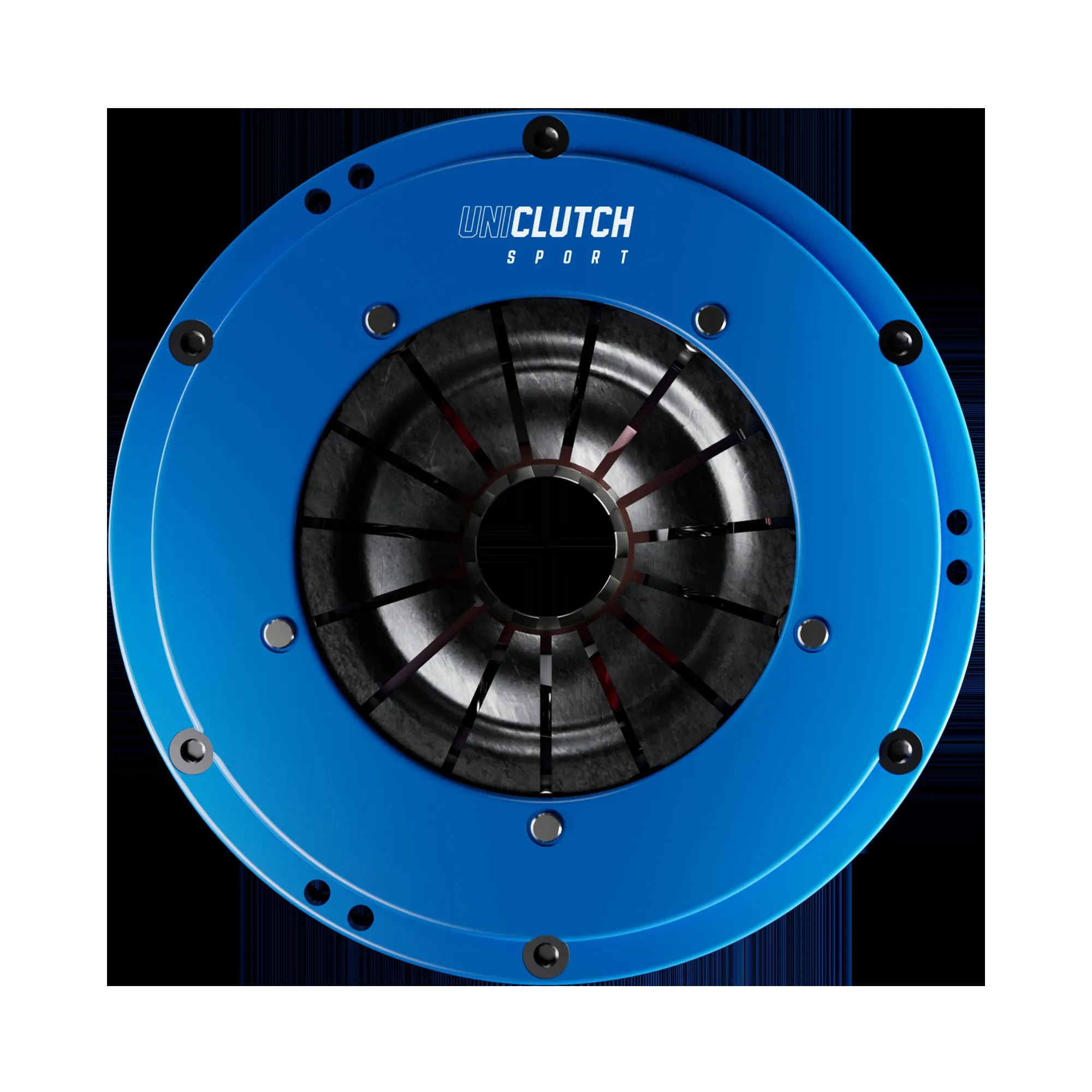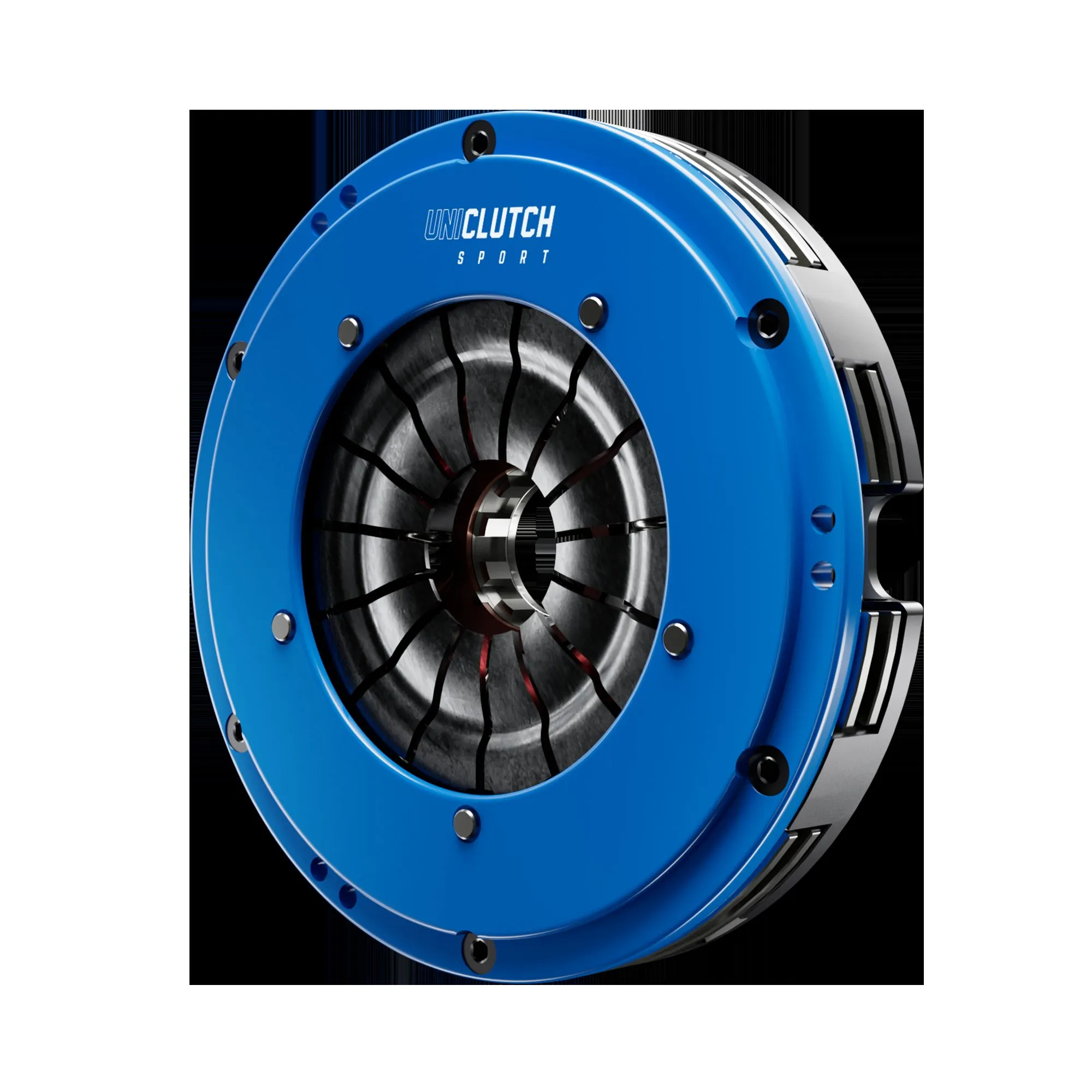195mm Twin Disc Organic | With RDC, Silent Shift, Sport Pedal, Cyclone Blue Sport Cover Czy Twoja codzienna jazda to jednocześnie weekendowa pasja? Dla jeszcze bardziej dynamicznej jazdy UniClutch Sport oferuje zwiększoną siłę docisku oraz twardsze wyczucie pedału sprzęgła, zachowując przy tym wysoki komfort prowadzenia. To kolejny poziom osiągów drogowych dla prawdziwych entuzjastów. Cechy i korzyści • Dwutarczowa konstrukcja poprawia zdolność przenoszenia momentu obrotowego oraz efektywność przekazywania mocy. • Zintegrowana powierzchnia cierna koła zamachowego eliminuje konieczność jego obróbki, oszczędzając czas i pieniądze. • Sportowe strojenie pedału sprzęgła zapewnia bardziej precyzyjne i dynamiczne odczucia z jazdy. • Elementy wykonane ze stali billetowej zapewniają do 3 razy większą wytrzymałość konstrukcji. • Technologia Silent Shift poprawia jakość i szybkość zmiany biegów, w dużym stopniu eliminując hałas i drgania. • Obudowa z wysokim dociskiem typu Billet zwiększa trwałość i redukuje ugięcia, zapewniając pełne wysprzęglanie bez efektu ciągnięcia. • Kute elementy wewnętrzne Dual Drive maksymalizują trwałość sprzęgła.