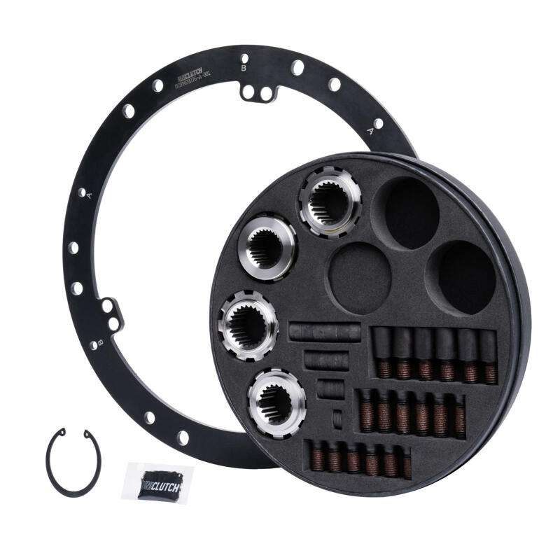 UniClutch Vehicle Fitment Kit – 195 mm Numer katalogowy: UCFK08276-A-001 UniClutch Vehicle Fitment Kit to kompletny zestaw montażowy przeznaczony do sprzęgieł UniClutch o średnicy 195 mm. Zapewnia wysoką wytrzymałość, szeroki zakres dopasowania oraz zwiększoną zdolność przenoszenia momentu obrotowego. Zawartość zestawu: Multi-Fit Flywheel Mount wykonany z wysokowytrzymałej stali Zestaw frezów wałka sprzęgłowego umożliwiający dopasowanie do różnych skrzyń biegów Zestaw śrub klasy 12.9 z fabrycznie naniesionym Pre-Loctite Informacje techniczne: Konstrukcja Twin Disc (dual core) zwiększająca możliwości przenoszenia momentu obrotowego Flywheel Mount ze stali o podwyższonej wytrzymałości, dedykowany do 195 mm UniClutch Śruby montażowe klasy 12.9 z Pre-Loctite Obsługiwane frezy wałka sprzęgłowego: 26.2 × 23T 27.5 × 10T 22.5 × 20T 25.2 × 24T 22.1 × 28T 24.3 × 23T Zastosowanie: Zestaw przeznaczony do zastosowań drogowych oraz motorsportowych, gdzie kluczowe znaczenie mają niezawodność, elastyczność montażu i wysoka wydajność układu przeniesienia napędu.