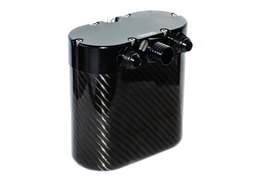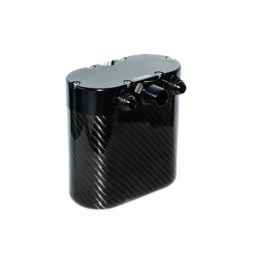 One common problem of the TSI engines is the carbon build-up on the intake valves. Due to the direct injection fueling system, where fuel is sprayed directly into the combustion chamber, the intake valves are not cleaned by fuel, therefore carbon deposits, a product of oil fumes of the stock PCV system, build-up on the valves. The RTMG Carbon Oil Catch Can can reduce the carbon build up on the intake valves up to 60%. The catch can also prevents oil pooling into the intercooler and intercooler hoses. Our smart filtering system takes care of the lighter vapors, while it also features a unique direct path to the bottom of the catch can for the heavy oil vapors, resulting in cleaning up to 99% of the returned fumes/vapors.   Specifics: CNC Billet Oil Catch Can Cap Carbon Fiber Oil Catch Can Main Body Oil Level check with a dipstick Drain-in-seconds system with drain valve Serviceable AN10 Inlet Barb Fittings 25mm Outlet Reduces Carbon Build Up 750g Weight