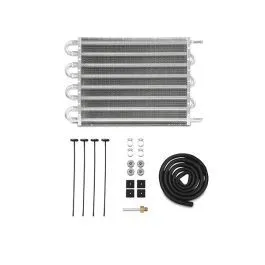 Keep high fluid temperatures at bay with a Mishimoto Universal Transmission Fluid Cooler! This cooler features a highly efficient 12" x 10" x 0.75" tube-and-fin core that promotes dramatic temperature drops. Mishimoto universal fluid coolers are applicable for use with transmission fluid, engine oil, power steering fluid, and a variety of other automotive fluids. This ready-to-install kit includes 5' of durable rubber hose, a universal mounting kit, and a four worm-gear clamps for secure connections. The universal mounting kit provides installation flexibility to fit any application. This cooler utilizes 3/8" push-on fittings, perfect for use as a replacement for a damaged factory cooler, or as an upgrade to a vehicle not equipped with a liquid-to-air cooler. As with all our products, this fluid cooler includes the Mishimoto Lifetime WarrantyUniversal mounting for use in any applicationHeight: 10.25" / Length: 15.75" / Core Length: 12" / Core Thickness: 0.75"3/8" push-on fittings for ease of installationIncludes 5 ft. of durable rubber hose, a universal mounting kit, and 4 worm-gear clampsMishimoto Lifetime Warranty