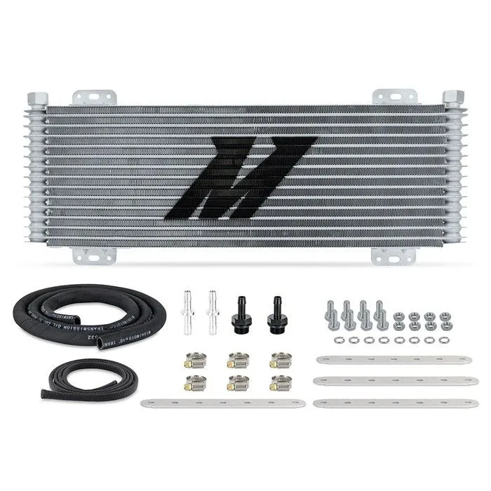 Keeping transmission fluid temperatures in check is key to extending the life of your transmission. High fluid temperatures cause reduced lubrication, which can damage seals, clutches, and bearings. Mishimoto has a solution with our highly efficient universal 13-row stacked-plate transmission cooler kit. This universal kit applies to any vehicle needing an ancillary cooler to assist in hot climates, towing, or extreme driving conditions. Our heat exchanger features a 40,000 GVW rating, making it ideal for heavy-duty applications. Within this transmission cooler kit, we include the necessary components for a typical installation. The included ¾"-16 to 3/8" hose barb adapter fittings feature an integrated O-ring for leak-free operation. Fifty feet of durable SAE J1532 transmission cooler hose is provided to route fluid to and from the transmission. SAE J1532 hose is explicitly designed for transmission fluids and features a spiral polyester reinforcement for increased pressure tolerance. Because routing of fluid lines is often around sharp objects or through tight passageways, we include a durable hose protection sleeve that prevents damage from abrasion. In addition, this transmission cooler includes a durable, corrosion-resistant powder-coated finish. We've included high-quality stainless-steel worm-gear clamps and 3/8" hose barb unions for mating the hose and fittings. Rounding out our Universal 13-row Stacked Plate Transmission Cooler kit is a set of 4 universal mounting brackets and associated hardware, making installation a breeze. As with all our products, this universal transmission cooler includes the signature Mishimoto Lifetime Warranty.