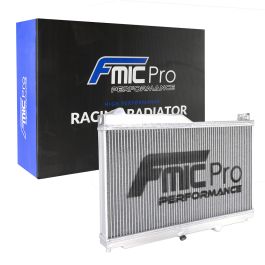Uniwersalna chłodnica wody FMIC.Pro 648 mm x 414 mm x 65 mm Uniwersalna aluminiowa chłodnica FMIC.Pro to doskonała alternatywa w stosunku do seryjnych chłodnic OEM, zapewniająca znacznie lepszą kontrolę temperatury oraz stabilniejszą pracę silnika w wymagających warunkach. W projektach tuningowych, swapach silników czy autach torowych odpowiednie chłodzenie jest kluczowe – a ta konstrukcja oferuje wydajność, która pozwala uniknąć przegrzewania i spadków osiągów. Chłodnica FMIC.Pro zapewnia do 35% większą efektywność odprowadzania ciepła w porównaniu ze standardowymi konstrukcjami dzięki zastosowaniu pełnego aluminiowego rdzenia o wysokiej przewodności cieplnej oraz zoptymalizowanej geometrii żebrowania. Wielorzędowy układ rdzenia i spawana struktura znacznie poprawiają wymianę ciepła, co przekłada się na bezpieczniejszą pracę jednostki napędowej. Całość wykonana została z wytrzymałego aluminium, boczki są precyzyjnie spawane i polerowane, co zwiększa odporność na ciśnienie oraz podnosi trwałość elementu. To idealny wybór do modyfikowanych o podniesionej mocy oraz wszelkich projektów, gdzie temperatura płynu chłodniczego musi pozostać pod kontrolą. Specyfikacja techniczna • Wymiary całkowite: 648 mm x 414 mm x 65 mm • Wymiary rdzenia: ok. 635 mm x 375 mm • Liczba rzędów: 3 • Średnica wlotu i wylotu: 36 mm • Grubość rdzenia: 54 mm • Konstrukcja z pełnego aluminium