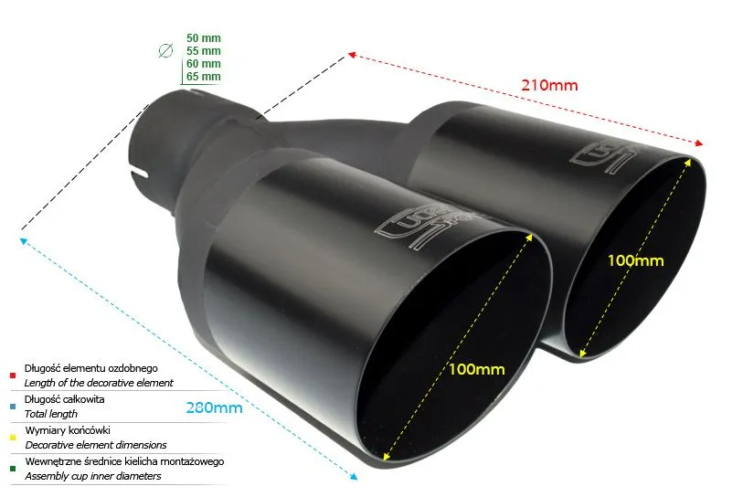 Końcówka wydechowa firmy Ulter Sport to doskonałe rozwiązanie w przypadku poszukiwania wysokiej jakości podzespołów przeznaczonych do budowy układów wydechowych. Dzięki zaawansowanej technologii i precyzyjnemu projektowi, końcówki wydechowe firmy Ulter Sport zapewniają doskonały przelot spalin, wydobywając z silnika maksymalną moc oraz podkreślając brzmienie jednostki napędowej.Dostępne w różnych konfiguracjach i stylach, końcówki wydechowe firmy Ulter Sport wzbogacają wygląd samochodu, dodając mu sportowego charakteru i agresywnego brzmienia. Dodatkowo, zastosowanie wysokiej jakości materiałów, takich jak polerowana stal nierdzewna, gwarantuje długotrwałą trwałość i odporność na korozję.Końcówki wydechowe firmy Ulter Sport doskonale współpracują z istniejącym układem wydechowym samochodu, zapewniając płynność przepływu spalin. Nie ważne, czy chcesz poprawić wydajność swojego sportowego samochodu, czy po prostu wprowadzić modyfikacje optyczne, końcówki wydechowe firmy Ulter Sport z pewnością spełnią Twoje oczekiwania. Dzięki ich montażowi, Twój samochód zyska nie tylko dodatkowe mocne brzmienie, ale również zyska na wyglądzie, stając się niepowtarzalnym i indywidualnym pojazdem.Jeśli szukasz sprawdzonego rozwiązania, które łączy w sobie wysoką jakość wykonania, wydajność i estetykę, końcówki wydechowe firmy Ulter Sport są dla Ciebie idealnym wyborem. Daj swojemu samochodowi jeszcze więcej charakteru decydując się na produkt tej renomowanej firmy. Kształt końcówki: okrągły Średnica montażowa [mm]: 65 Średnica zewnętrzna [mm]: 2x100 Długość części ozdobnej [mm]: 280 BRAK OBEJM W ZESTAWIE