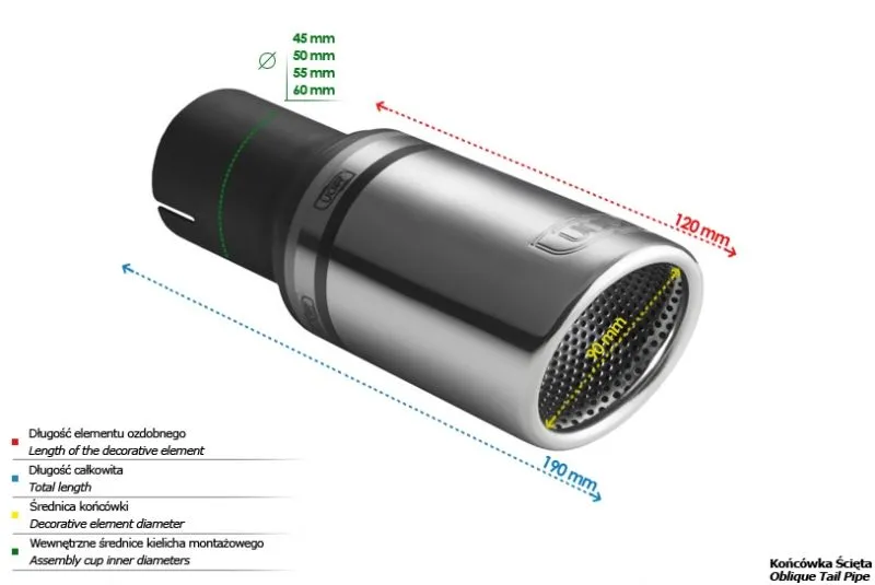 Końcówka wydechowa firmy Ulter Sport to doskonałe rozwiązanie w przypadku poszukiwania wysokiej jakości podzespołów przeznaczonych do budowy układów wydechowych. Dzięki zaawansowanej technologii i precyzyjnemu projektowi, końcówki wydechowe firmy Ulter Sport zapewniają doskonały przelot spalin, wydobywając z silnika maksymalną moc oraz podkreślając brzmienie jednostki napędowej.Dostępne w różnych konfiguracjach i stylach, końcówki wydechowe firmy Ulter Sport wzbogacają wygląd samochodu, dodając mu sportowego charakteru i agresywnego brzmienia. Dodatkowo, zastosowanie wysokiej jakości materiałów, takich jak polerowana stal nierdzewna, gwarantuje długotrwałą trwałość i odporność na korozję.Końcówki wydechowe firmy Ulter Sport doskonale współpracują z istniejącym układem wydechowym samochodu, zapewniając płynność przepływu spalin. Nie ważne, czy chcesz poprawić wydajność swojego sportowego samochodu, czy po prostu wprowadzić modyfikacje optyczne, końcówki wydechowe firmy Ulter Sport z pewnością spełnią Twoje oczekiwania. Dzięki ich montażowi, Twój samochód zyska nie tylko dodatkowe mocne brzmienie, ale również zyska na wyglądzie, stając się niepowtarzalnym i indywidualnym pojazdem.Jeśli szukasz sprawdzonego rozwiązania, które łączy w sobie wysoką jakość wykonania, wydajność i estetykę, końcówki wydechowe firmy Ulter Sport są dla Ciebie idealnym wyborem. Daj swojemu samochodowi jeszcze więcej charakteru decydując się na produkt tej renomowanej firmy. Kształt końcówki: okrągły Średnica montażowa [mm]: 45 Średnica zewnętrzna [mm]: 90 Długość całkowita końcówki [mm]: 190 Długość części ozdobnej [mm]: 120 BRAK OBEJM W ZESTAWIE