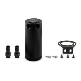 With years of oil catch can research and development, Mishimoto has created the most effective oil catch can on the market. The patent pending Mishimoto XL Baffled Oil Catch Can was designed to separate oil particles from the PCV/CCV air that would normally have just been routed back to your intake. The internal air diverter increases air turbulence and ensures all the oil sinks to the bottom of the can, leaving nothing but clean air to pass through the 50-micron bronze filter to the intake. An internal baffle keeps the collected oil from splashing around under race conditions. This oil catch can features two ports, one inlet and one outlet, for easy installation on CCV and PCV systems.The Mishimoto XL Baffled Oil Catch Can features a 7.5 fluid ounce capacity for heavy blow-by collection or extending the servicing interval on any vehicle. The 100% billet, 6061 aluminum can features M16 x 1.5 threads at the inlet, outlet, and drain area and includes two black anodized, CNC-machined aluminum fittings to make installation effortless. Our catch can is also sealed with Viton™ O-Rings to ensure all captured blow-by stays inside of the can. For maximum fitment options, the top mounting setup allows the can to be mounted from multiple angles. To make maintenance easy, the drain plug can be removed to allow for a return to the oil pan. The can is also 100% washable, unlike many other cans that require you to replace your filtration system.Our catch cans are different from most air-oil-separator (AOS) systems on a few levels. First, our catch cans are not heated. This means that all of the blow-by is able to condense in the can, including low-octane oil vapors and contaminated fuel vapors. Most AOS systems also drain the blow-by back into the oil pan, while our catch cans trap the blow-by and keep it out of the engine permanently. If you’ve seen what we’ve seen in the bottom of our catch cans, you won’t want that draining back into your oil either.