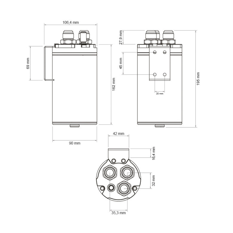 -W komplecie podwójny wlot AN-10 z przyłączami męskimi AN-10. Odpowietrznik z podwójnym filtrem,