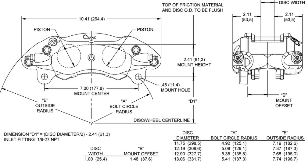 Zacisk hamulcowy GNX4 Zaciski GNX4 są rezultatem zaawansowanych prac projektowych Wilwood, prowadzonych z wykorzystaniem wewnętrznych analiz FEA oraz technologii modelowania 3D. Dzięki wyjątkowo sztywnej konstrukcji i dopracowanemu układowi tłoczków, GNX4 zapewnia precyzyjną reakcję pedału oraz wysoką efektywność docisku, przy jednoczesnej znaczącej redukcji masy w porównaniu do porównywalnych zacisków OEM. Korpus wykonany z kutego aluminium typu billet, tłoczki ze stali nierdzewnej oraz uszczelnienia wysokotemperaturowe eliminują problemy typowe dla wielu konstrukcji seryjnych, takie jak korozja, wżery w cylindrach czy awarie uszczelnień. Wersja ta posiada czerwone wykończenie w postaci trwałego lakieru proszkowego. Uwaga: Aktualne zespoły zacisków GNX4 są przeznaczone wyłącznie do pracy z płynem hamulcowym DOT 5 i nie mogą być stosowane z płynami DOT 3, DOT 4 ani DOT 5.1. Tłoczki ze stali nierdzewnej ograniczają przenikanie ciepła z klocków hamulcowych, natomiast aluminiowy korpus zacisku skuteczniej odprowadza ciepło niż żeliwne zaciski OEM. Niższe temperatury pracy przekładają się na dłuższą żywotność komponentów w każdych warunkach eksploatacyjnych. Dodatkowo każdy zacisk wyposażono w nierdzewne płyty mostka SRS, które ograniczają zużycie spowodowane nacinaniem klocków na mostku oraz redukują hałas poprzez eliminację luzów i tłumienie drgań. Tłoczki Liczba tłoczków: 4 Powierzchnia tłoczków (in²): 5,56 Typ tłoczka: stal nierdzewna Osłona przeciwpyłowa: tak Wymiary tarczy Szerokość tarczy (in): 1,00 Średnica tarczy (in): 13,06 Wymiary klocków hamulcowych Powierzchnia klocków (in²): 11,15 Objętość klocków (in³): 4,07 Klasa obciążenia i materiał Materiał: kute aluminium Masa (lbs): 7,7 Kolory i wykończenie Kolor: czerwony Wykończenie: czerwony lakier proszkowy Mocowanie Rozstaw mocowania (in): 7,00 Strona montażu: uniwersalna Typ mocowania: Lug Specyfikacja Kompatybilność tarcz Nominalna szerokość tarczy (in): 1,00 Maksymalna szerokość tarczy (in): 1,00 Minimalna szerokość tarczy (in): 0,88 Maksymalna średnica tarczy (in): 13,06 Minimalna średnica tarczy (in): 11,75 Specyfikacja klocków hamulcowych Typ klocka 1: 9115 Typ klocka 2: N/A Typ klocka 3: N/A Łączna powierzchnia klocków (in²): 11,15 Łączna objętość klocków (in³): 4,07 Specyfikacja tłoczków Średnica tłoczka 1 (in): 1,88 Średnica tłoczka 2 (in): 1,88 Całkowita powierzchnia tłoczków (in²): 5,56 Specyfikacja mocowania Typ mocowania: Lug Strona montażu: uniwersalna Rozstaw mocowania (in): 7,00 Średnica otworu montażowego (in): 0,45 Wysokość mocowania (in): 2,41 Gwint przyłącza hydraulicznego: 1/8-27 NPT