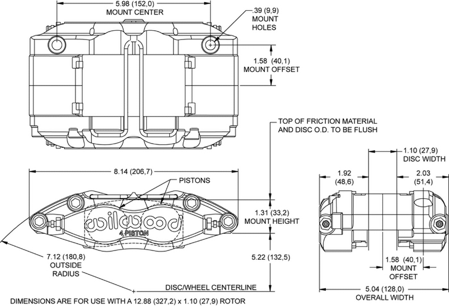 Zacisk hamulcowy Dynapro-13 z uszczelnieniem przeciwpyłowym, montaż radialny Czterotłoczkowe zaciski hamulcowe Dynapro z uszczelnieniem przeciwpyłowym i montażem radialnym (DPR-DS) stanowią przykład ciągłego procesu modernizacji i udoskonalania rozwiązań technicznych Wilwood. Łączą czystą technologię wyścigową z nową generacją ulepszeń zwiększających osiągi. Model Dynapro-DS oferuje wszechstronność montażu radialnego, smukły profil, bardzo wysoką wytrzymałość oraz wyjątkową trwałość w trudnych warunkach eksploatacyjnych. Zastosowanie uszczelek przeciwpyłowych tłoków umożliwia użytkowanie zacisku w środowiskach wymagających ochrony przed czynnikami zewnętrznymi. Niska masa własna, sięgająca nawet 3,58 funta, sprawiła, że seria Dynapro jest chętnie wybierana do zastosowań sportowych, rajdowych oraz off-roadowych. Wytrzymałość zacisku Dynapro jest efektem połączenia zaawansowanego procesu produkcyjnego i przemyślanej konstrukcji. Proces kucia metodą stress-flow powoduje ukierunkowanie struktury ziaren metalu zgodnie z konturem korpusu zacisku, co zapewnia wyższą wytrzymałość niż w przypadku elementów frezowanych z litego bloku lub odlewów. Konstrukcja korpusu opracowana z użyciem analizy MES (FEA) obejmuje radialne przejścia pomiędzy gniazdami tłoków a mostkami zacisku, eliminując stopnie i ostre krawędzie w kluczowych obszarach nośnych. Znacząco zwiększa to odporność na ugięcia i rozdzielanie korpusu pod dużym obciążeniem. Testy ugięć strukturalnych oraz przemieszczeń objętościowych potwierdziły skuteczność tego rozwiązania, czego efektem jest twardy pedał hamulca i wysoka skuteczność hamowania. Zaciski Dynapro dostępne są w trzech konfiguracjach. Wersja standardowa przeznaczona jest do tarcz o średnicy do 12,19” i wyposażona w nierdzewne tłoki z uszczelnieniami przeciwpyłowymi, zapewniającymi maksymalną ochronę przed zanieczyszczeniami pochodzącymi z toru lub drogi w aplikacjach o średnich i wysokich temperaturach pracy. Wersja Dynapro-13 o wydłużonym promieniu montażowym jest przeznaczona do tarcz o średnicy do 13,00”. Modele wyczynowe wykorzystują izolowane tłoki Thermlock, ograniczające przenikanie ciepła z klocków hamulcowych. Wszystkie zaciski Dynapro mogą być opcjonalnie wyposażone w tłoki Thermlock w celu zapewnienia maksymalnej ochrony termicznej w warunkach długotrwałego, wysokiego obciążenia cieplnego. Tłoki Liczba tłoków: 4 Powierzchnia tłoków: 1,58 in² Typ tłoków: stal nierdzewna Osłony przeciwpyłowe: tak Wymiary tarczy Szerokość tarczy: 1,10 in Średnica tarczy: 13,00 in Wymiary klocków Powierzchnia klocków: 6,36 in² Objętość klocków: 3 in³ Klasa pracy i materiał Materiał: kute aluminium Masa: 4,3 lb Kolory i wykończenie Kolor: czarny Wykończenie: czarna powłoka proszkowa Mocowanie Rozstaw montażowy: 5,98 in Strona montażu: uniwersalna Typ montażu: radialny Specyfikacja Kompatybilność z tarczami Nominalna szerokość tarczy: 1,10 in Maksymalna szerokość tarczy: 1,10 in Minimalna szerokość tarczy: 1,00 in Maksymalna średnica tarczy: 13,00 in Minimalna średnica tarczy: 11,75 in Specyfikacja klocków hamulcowych Typ klocków 1: 7816 Typ klocków 2: N-A Typ klocków 3: N-A Całkowita powierzchnia klocków: 6,36 in² Całkowita objętość klocków: 3 in³ Specyfikacja tłoków Średnica tłoka 1: 1,00 in Średnica tłoka 2: 1,00 in Całkowita powierzchnia tłoków: 1,58 in² Specyfikacja montażu Typ montażu: radialny Strona montażu: uniwersalna Rozstaw montażowy: 5,98 in Średnica otworów montażowych: 0,39 in Wysokość montażowa: 1,29 in Gwint przyłącza hydraulicznego: 1/8-27 NPT