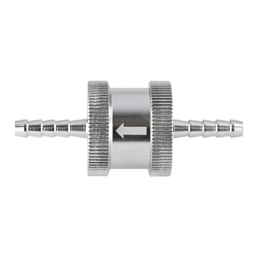 Wysokiej jakości uniwersalny zawór kierunkowy FMIC.EU przeznaczony do pracy w układach podciśnieniowych, paliwowych oraz z olejem napędowym. Wykonany z trwałego aluminium pokrytego czarną powłoką oksydowaną, zapewnia wysoką odporność chemiczną i mechaniczną w wymagających warunkach pracy. Zawór umożliwia przepływ tylko w jednym kierunku, skutecznie zapobiegając jego cofaniu.