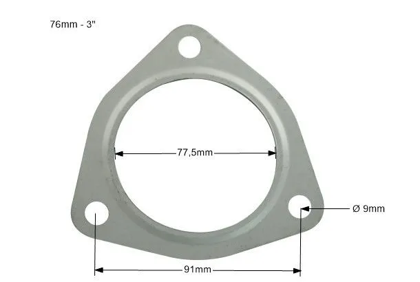 Uszczelka do układu wydechowego o średnicy wewnętrznej 76mm (3") pod flansze na 3 śruby. Wykonana z wysokiej jakości 3 warstwowego materiału żaroodpornego, dodatkowo wzmocniona metalowym pierścieniem. Gwarantuje szczelność układu wydechowego nawet w mocno obciążonych, tuningowych samochodach. Grubość uszczelki wynosi aż 2mm!
