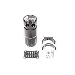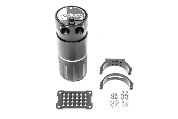 Radium Competition Catch Cans (CCC) are specifically made to vent to atmosphere (VTA). For a VTE competition catch can that recirculates clean air back into the intake, click HERE. There is a large and extra large version of the VTA competition catch can (see below for more details). The XL CCC meets the common 1 quart minimum capacity requirements dictated by many organizing bodies including SCCA, NASA, and Formula Drift. Both VTA CCCs have 2 adjacent inlets making them complimentary to dual bank engines, as shown below. Both inlet ports are machined with 10AN ORB (7/8"-14) threads. NOTE: For engines with 1 crankcase vent port, simple use 14-0351 to plug the additional inlet port. The VTA CCC features one giant non-restrictive outlet that is over 183% larger than the inner diameter of the 10AN inlets. This increase in volume slows air flow allowing contaminants to fall out of suspension. Additionally, contaminants are trapped with a diffuser permitting the oil sludge to fall back into the catch can preventing overspray in the engine bay. As shown, the CNC machined aluminum can unscrews for ease of serviceability. The VTA CCC has a dual stage condensing material design (located in the inlet and outlet). These free flowing chambers do not create any flow restriction. Like all Radium catch cans, an easily accessed dipstick is provided to quickly check fluid level, as shown. The included bracket provides a ton of flexibility and permits full 360 degree rotation. Additionally, M6x1mm hardware is provided for chassis mounting, as shown. SPECIFICATIONS 20-0771 AND 20-0772INLET THREADS: 10AN ORB (7/8"-14)DRAIN THREADS: 4AN ORB (7/16"-20)OUTER DIAMETER: 3.45" 20-0771HEIGHT: 9.0” / 229mmWEIGHT: 2.2 lbs (w/ all hardware)VOLUME: 1qt / 0.9L / 32floz Instruction PDF