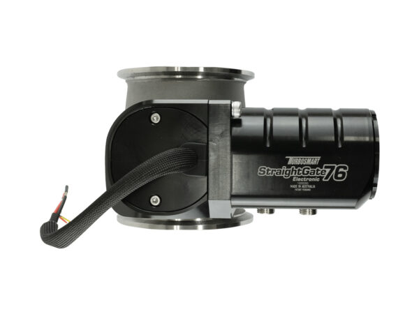 The StraightGate76 from Turbosmart is the world’s highest flowing external wastegate! The StraightGate76 is a zero-offset butterfly style wastegate which allows enormous flow and almost linear control with unparalleled boost control throughout the entire operating range. Turbosmart’s eSG76 Electronic StraightGate is a Patent Pending and based on the success of the Multiple Award Winning, World First eSG50 Electronically Actuated Butterfly Style External Wastegate. No reference hoses, no springs and no diaphragms means full electronic control via a servo motor and Turbosmart’s zero-backdrive gearbox which results in lower current demands as well as operation stability against huge drive pressures. The eSG76 includes onboard sensors covering actuator temperature as well as valve position in both analog and digital. The Electronic actuation results in the widest possible tuning window from zero boost (if manifold priority allows for it) to all available boost. The Turbosmart StraightGate76 has been designed from the ground up & validated in-house to create a new level of control and flow, never seen in any wastegate before it. The zero-offset butterfly valve is subjected to exhaust drive pressure equally on both halves of the valve which pivots centrally, resulting in a valve that is self-balanced against any drive pressure. This self-balancing means less work is required to actuate against even the highest of drive pressures and a wider tuning window is possible, no matter how the valve is actuated. The increased flow is achieved through the efficiency of a straight through valve versus a traditional poppet style valve where the exhaust gas must be turned 90 degrees by the valve. Available inStraightGate40StraightGate50StraightGate76 Features76mm (2.99in) Butterfly Style Zero-Offset Valve723.7 CFM / 20.49m3 per minute flowStainless Steel (630) Butterfly and shaftStainless Steel (347) Main BodyStainless Steel (Heat Treated 431) V-Band Clamps360 Degree Mounting options on V-BandClock-able Actuator Position (3 x 120 Deg Options)Full Electronic Actuation (Dual H-Bridge Input)Onboard (0-5v) Analog Actuator Temperature SensorOnboard (0-5v) Analog Valve Position SensorOnboard (PWM) Digital Valve Position Sensor7 Wire Unterminated Flying Lead LoomLiquid Cooling for Actuator Stability