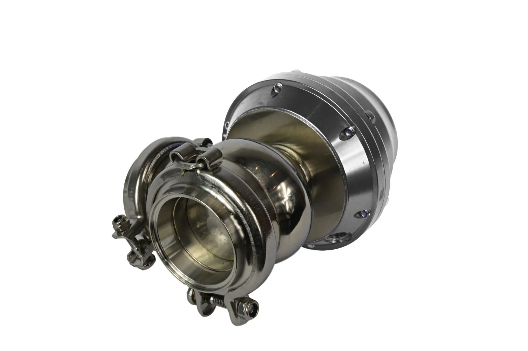 Potężny, firmowy FMIC, zewnetrzny zawór wastegate z otworem o średnicy 40mm. Pozwala to stosować go w bardzo mocnych samochodach z turbosprężarkami bez wbudowanego WG (np Holset HX35, KKK27 itd). W zestawie posiada drugą sprężynę, co znacznie ułatwia ustawienie go pod dane doładowanie. Zawór jest bardzo solidnie wykonany, wytrzymałością, jak i kulturą pracy powala wszystkie inne dostępne zawory w tym przedziale cenowym, dorównując przy tym oryginałom. Dodatkowym plusem jest sposób łączenia poprzez v-band (dostępny w zestawie), co znacznie ułatwia jego montaż/demontaż, jak i eliminuje problem z wyginającymi się flanszami, zapiekającymi oraz odkręcającymi się nakrętkami, jak to miało miejsce w przypadku zwykłych WG.Zawór posiada nierdzewny, polerowany korpus, który w przeciwieństwie do żeliwnych, sprzedawanych na innych aukcjach, podobnych zaworów, nie odkształca się blokując tłoczek! Takie przycięcie często powoduje przeładowanie i uszkodzenie turbiny lub silnika!