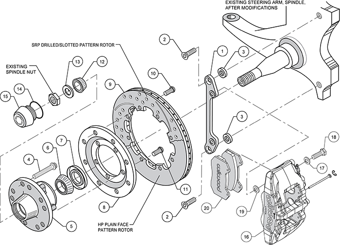 Przedni zestaw hamulcowy Big Brake Forged Dynapro 6 (piasta) Zestaw przednich hamulców Forged Dynapro 6 Big Brake został zaprojektowany dla klasycznych wrzecion bez systemu ABS stosowanych w amerykańskich samochodach typu muscle car oraz w pojazdach typu hot rod i klasycznych konstrukcjach custom. Kute zaciski Dynapro 6 wykonane z aluminium typu billet współpracują z tarczami hamulcowymi o średnicy 12,19 cala, zapewniając zwiększoną wydajność hamowania i wysoką skuteczność pracy klocków hamulcowych. Sześciotłoczkowe zaciski oferują wyraźnie większą pojemność hamowania, stanowiąc pośredni poziom wydajności pomiędzy standardowymi układami a największymi zestawami sześciotłoczkowymi. Zestaw doskonale współpracuje z modernizacjami układu zawieszenia, kół i opon w pojazdach pokazowych oraz w samochodach drogowych i street/strip o podwyższonych osiągach. Szeroki wybór wykończeń zacisków i typów tarcz pozwala dopasować styl oraz zoptymalizować parametry hamowania do konkretnego projektu. Podsumowanie zestawu Offset piasty OE: -0,28 (Zmiana rozstawu kół – zwiększenie / zmniejszenie szerokości toru) Typ wrzeciona: fabryczne wrzeciono hamulca tarczowego Typ montażu: Lug Typ zacisku: 6-tłoczkowy – czarna powłoka proszkowa Średnica tarczy: 12,19 cala Minimalna wymagana średnica felgi*: 15 cali Komponenty zestawu i specyfikacja Zaciski Lewy – nr części: 120-13429-BK Prawy – nr części: 120-13428-BK Typ: Dynapro 6 Wykończenie: czarna powłoka proszkowa Liczba tłoczków: 6 Średnica tłoczka 1 (cal): 1,62 Średnica tłoczka 2 (cal): 1,38 Średnica tłoczka 3 (cal): 1,38 Powierzchnia tłoczków (in²): 5,06 Materiał tłoczków: stal nierdzewna Typ montażu: Lug Płytka klocka hamulcowego: 6712 Powierzchnia klocka hamulcowego (in²): 7,3 Objętość klocka hamulcowego (in³): 2,4 Mieszanka klocków: BP-10 Tarcze hamulcowe Lewa – nr części: 160-7104-BK Prawa – nr części: 160-7103-BK Typ: SRP Drilled Rotor Styl: SRP – nawiercane i nacinane Wykończenie powierzchni: czarna powłoka elektroforetyczna Materiał: żeliwo Średnica zewnętrzna (cal): 12,19 Szerokość (cal): 0,81 Liczba kanałów wentylacyjnych: 32 V Typ konstrukcji: SRP-BLK Wstępne docieranie (Burnished): nie Wyważanie dynamiczne: nie Kompatybilność pojazdów Buick Apollo 1975 Disc Brake Spindle Buick Century 1973-1977 Disc Brake Spindle Buick Estate Wagon 1977-1978 With OE 11" Rotor Spindles Buick LeSabre 1977-1978 With OE 11" Rotor Spindles Buick Regal 1973-1977 Disc Brake Spindle Buick Skylark 1975-1978 Disc Brake Spindle Cadillac Seville 1976 Disc Brake Spindle Chevrolet Camaro 1970-1978 Disc Brake Spindle Chevrolet Chevelle 1973-1977 Disc Brake Spindle Chevrolet Chevelle Concours 1977-1978 All Chevrolet El Camino 1973-1977 All Chevrolet Impala 1977-1978 With OE 11" Rotor Spindles Chevrolet Malibu 1973-1977 Disc Brake Spindle Chevrolet Monte Carlo 1973-1977 Disc Brake Spindle Chevrolet Nova 1975-1978 Disc Brake Spindle GMC Sprint 1973-1977 All Oldsmobile 442 1973 Disc Brake Spindle Oldsmobile Custom Cruiser 1977-1978 With OE 11" Rotor Spindles Oldsmobile Cutlass 1973-1977 Disc Brake Spindle Oldsmobile Cutlass Supreme 1974-1976 All Oldsmobile Cutlass Supreme 1973-1977 Disc Brake Spindle Oldsmobile Delta 88 1977-1978 With OE 11" Rotor Spindles Oldsmobile Omega 1975-1978 Disc Brake Spindle Oldsmobile Vista Cruiser 1973-1976 Disc Brake Spindle Pontiac Bonneville 1977-1978 With OE 11" Rotor Spindles Pontiac Catalina 1977-1978 With OE 11" Rotor Spindles Pontiac Firebird 1970-1978 Disc Brake Spindle Pontiac Grand Am 1973-1975 Disc Brake Spindle Pontiac Grand Prix 1973-1977 Disc Brake Spindle Pontiac GTO 1973 Disc Brake Spindle Pontiac LeMans 1973-1977 Disc Brake Spindle Pontiac Phoenix 1977-1978 Disc Brake Spindle Pontiac Ventura 1975-1977 Disc Brake Spindle