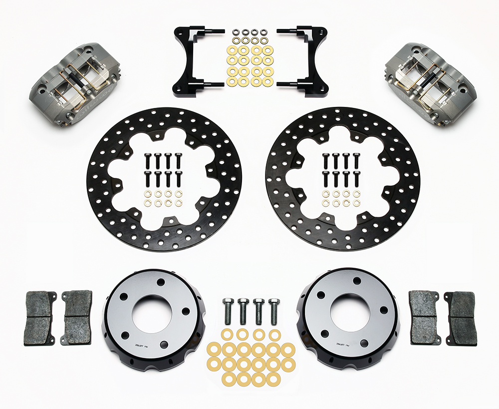 Zestaw Hamulców Przednich Dynapro Radial Front Drag NDPR kute zaciski czterotłoczkowe z radialnym mocowaniem zostały zastosowane w tej specjalnie dobranej grupie zestawów do wyścigów drag. Fabryczne układy hamulcowe stosowane w pojazdach wyposażonych oryginalnie w felgi 16" lub większe zwykle nie mieszczą się w popularnych 15-calowych kołach drag. Specjalnie zaprojektowane, radialne uchwyty zacisku przykręcane są bezpośrednio do fabrycznego mocowania, zapewniając precyzyjne i stabilne osadzenie zacisku NDPR. Tarcze stalowe 3/8" rekomendowane są do pojazdów z czterema tarczami o masie do 2800 lbs. Tarcze o szerokości 0.81" należy stosować w samochodach powyżej 2800 lbs lub w lżejszych pojazdach osiągających ekstremalne prędkości, gdzie wymagana jest większa trwałość cieplna. Podsumowanie zestawu Typ zwrotnicy: Fabryczna zwrotnica tarczowa Typ mocowania: Radialne Typ zacisku: 4-tłoczkowy, anodowanie Type III Średnica tarczy: 11.75" Minimalna średnica felgi: 15" Modele pojazdów Chevrolet Camaro 1998–2002, tył tarczowy Chevrolet Camaro 1993–1997 po konwersji na zwrotnice F-Body 1998–2002 (tył tarcze) Chevrolet Camaro 1993–1997 po konwersji na zwrotnice F-Body 1998–2002 (tył bębny) Pontiac Firebird 1998–2002, wszystkie wersje Elementy zestawu i specyfikacje Zaciski Lewy: nr części 120-9993 Prawy: nr części 120-9993 Typ: Narrow Dynapro Radial Mount Wykończenie: Type III Anodize Liczba tłoczków: 4 Średnica tłoczków (in): 1.75 / 1.75 Powierzchnia tłoczków (In²): 4.80 Materiał tłoczków: Stal nierdzewna Mocowanie: Radialne Typ płytki klocka: 7812 Powierzchnia klocka (In²): 6.36 Objętość klocka (In³): 2.1 Mieszanka: BP-10 Tarcze Lewa: nr części 160-3202 Prawa: nr części 160-3202 Typ: Tarcza stalowa nawiercana Styl: Nawiercana Wykończenie powierzchni: Black Electro Coat Materiał: Stal Średnica zewnętrzna (in): 11.75 Szerokość (in): 0.35 Liczba żeber: Pełna (solid) Konstrukcja: Solid Wypalanie: Nie Wyważanie dynamiczne: Nie Dzwony (Rotor Hats) Nr części: 170-10782 Typ: Drag Hat – małe odsunięcie Materiał: Aluminium Wykończenie: Black E-Coat Odsadzenie (in): 1.590 Rozstaw otworów 1: 5 × 4.75 Rozstaw otworów 2: Rozstaw otworów 3: Średnica szpilek BC1 (in): 0.520 Średnica szpilek BC2 (in): 0.000 Średnica szpilek BC3 (in): 0.000