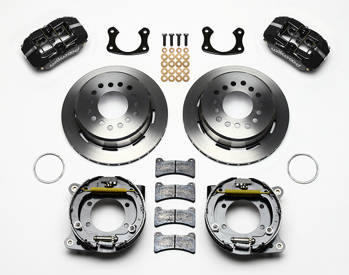 Zestaw Hamulców Tylnych z Hamulcem Postojowym Forged Dynapro Low-Profile Zestawy tarczowych hamulców tylnych Forged Dynapro Low-Profile Pro-Series to kompletne rozwiązanie dla popularnych osi muscle carów, w szczególności w aplikacjach wymagających hamulca postojowego oraz zwiększonego prześwitu dla felg o średnicy 14–15 cali. Kute, niskoprofilowe zaciski czterotłoczkowe Dynapro, zintegrowane 11-calowe tarcze z dzwonem oraz klocki o wysokim współczynniku tarcia zapewniają zoptymalizowaną, wyważoną i skuteczną siłę hamowania w pojazdach typu street/strip i w samochodach pokazowych. Wewnętrzny, dyskretnie ukryty mechanizm szczękowy hamulca postojowego umożliwia czysty montaż i oferuje wysoką statyczną siłę utrzymania. Opcjonalne wykończenia zacisków oraz różne wzory tarcz pozwalają na pełną personalizację układu hamulcowego. Podsumowanie zestawu Typ tylnej osi: Small Ford Offset półosi: 2.50 Typ mocowania: Lug Typ zacisku: 4-tłoczkowy, Polish Średnica tarczy: 11.00" Minimalna średnica felgi: 14" Elementy zestawu i specyfikacje Zaciski Lewy: nr części 120-16190-P Prawy: nr części 120-16190-P Typ: Forged Dynapro Low Profile Wykończenie: Polish (polerowane) Liczba tłoczków: 4 Średnica tłoczków (in): 1.38 / 1.38 Powierzchnia tłoczków (In²): 3.00 Materiał tłoczków: Stal nierdzewna Mocowanie: Lug Typ płytki klocka: 4812 Powierzchnia klocka (In²): 5.1 Objętość klocka (In³): 1.71 Mieszanka: BP-10 Tarcze Lewa: nr części 160-11364 Prawa: nr części 160-11364 Typ: Ultralite HP 32 & Hat Styl: Gładka powierzchnia Wykończenie: Plain Materiał: Żeliwo Średnica zewnętrzna (in): 11.00 Szerokość (in): 0.81 Ilość żeber: 32 V Typ konstrukcji: ULHP Wypalanie: Nie Wyważanie dynamiczne: Nie