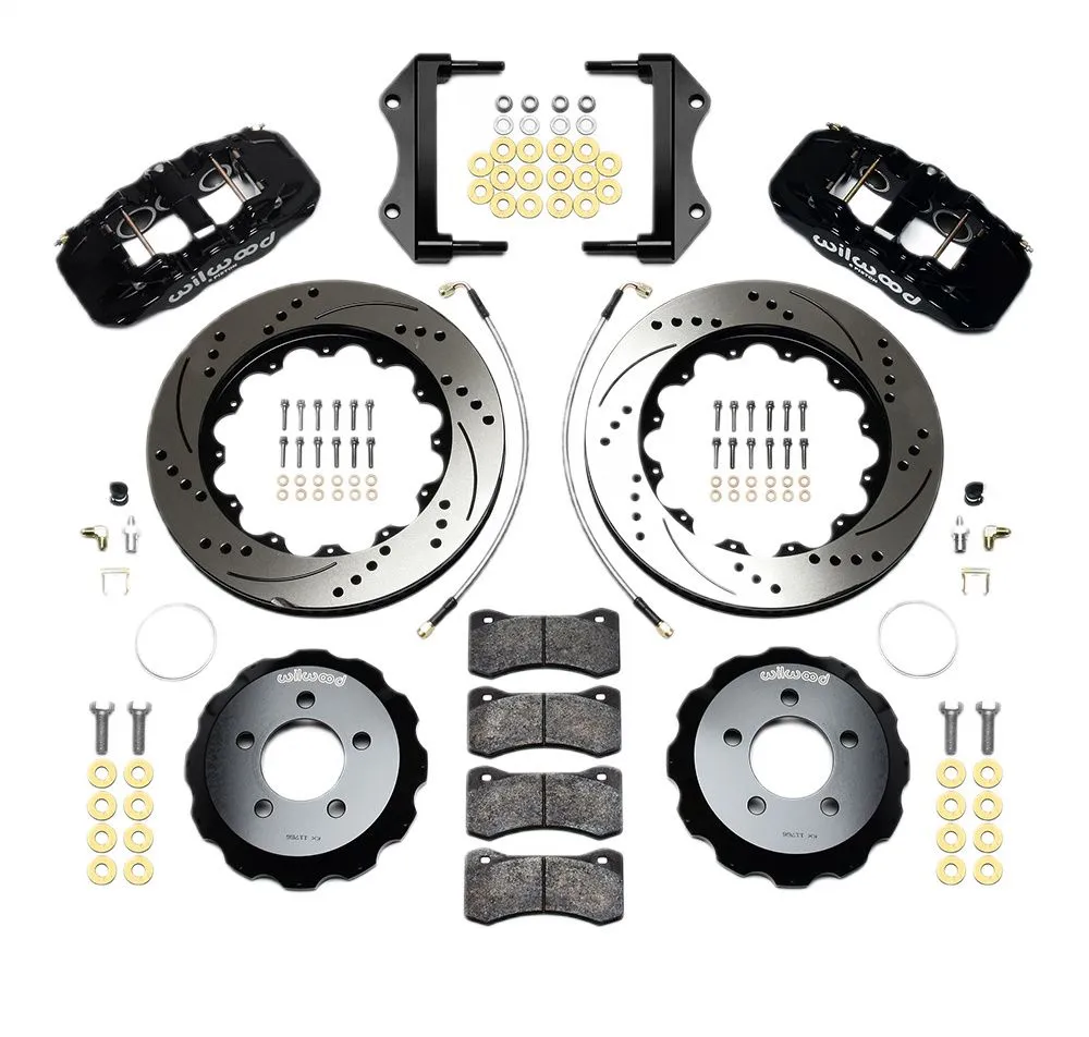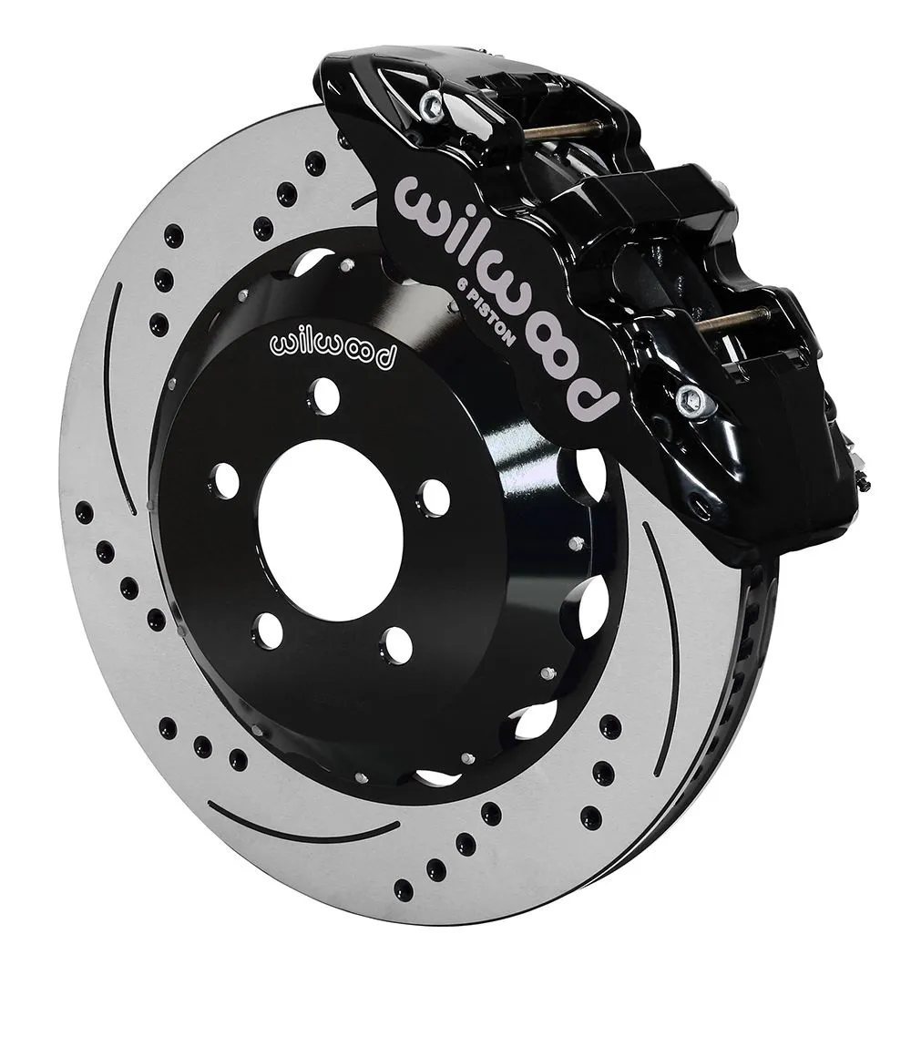 Zestaw przednich hamulców AERO6 Big Brake Zestaw przednich hamulców Wilwood AERO6 Big Brake został zaprojektowany dla pojazdów o dużej masie oraz pracy w warunkach ekstremalnych. W samochodach osobowych zapewnia bardzo wysoką wydajność hamowania w zastosowaniach pokazowych oraz uliczno-torowych. W samochodach typu truck i SUV oferuje zwiększoną siłę hamowania przy holowaniu, jeździe w terenie oraz przy modyfikacjach kół i opon. Zestawy dedykowane do konkretnych modeli są w pełni kompatybilne z fabrycznym cylindrem głównym oraz systemem ABS. Kierunkowe tarcze z łopatkami o zróżnicowanym układzie (staggered vane) w zakresie średnic 14.00–14.25” zapewniają maksymalne chłodzenie i wysoką odporność na przegrzewanie przy długotrwałym obciążeniu. Podsumowanie zestawu Typ zwrotnicy: Factory Disc Spindle Typ mocowania zacisku: Radial Typ zacisku: 6 – Black Powder Coat Średnica tarczy (in): 14.25 Minimalna średnica felgi (in): 18 Komponenty i specyfikacje Zaciski Lewy zacisk – nr części (LH): 120-13294-BK Prawy zacisk – nr części (RH): 120-13293-BK Typ: AERO6 Wykończenie: Black Powder Coat Liczba tłoczków: 6 Średnice tłoczków (in): 1.75 / 1.38 / 1.38 Powierzchnia tłoczków (In²): 5.40 Materiał tłoczków: Stainless Typ montażu: Radial Płytka klocka: 6617 Powierzchnia klocka (In²): 11.1 Objętość klocka (In³): 5.2 Mieszanka klocków: BP-10 Tarcze Lewa tarcza – nr części (LH): 160-11314-BK Prawa tarcza – nr części (RH): 160-11313-BK Typ: SRP Drilled Rotor Styl: SRP Drilled & Slotted Wykończenie powierzchni: Black Electro Coat Materiał: Spec-37 Iron Średnica zewnętrzna (in): 14.25 Szerokość (in): 1.25 Liczba kanałów chłodzących: 72 CV Typ konstrukcji: SRP-BLK Dotarcie (Bedded): No Wyważenie dynamiczne: Yes Dzwony (Rotor Hats) Nr części: 170-11766 Typ: Big Brake Hat – Flared Bell Materiał: Aluminum Wykończenie: Black E-Coat Wymiar offsetu (in): 1.200 Rozstaw śrub 1: 5 × 4.53 Rozstaw śrub 2: — Rozstaw śrub 3: — Średnica szpilek – BC 1 (in): 0.630 Średnica szpilek – BC 2 / 3 (in): 0.000 Kompatybilność z pojazdami (pełna lista) Chrysler 300 2015–2022 RWD 2012–2014 RWD 3.6 Liter 2012–2014 RWD 5.7 Liter Dodge Challenger 2019–2022 GT (RWD) 2012–2022 R/T 2012 R/T Classic 2015–2016 R/T Plus 2016 R/T Plus Shaker 2016 R/T Shaker 2014 Rallye Redline 2012–2018 SXT 2019–2022 SXT RWD 2012–2018 SXT Plus 2017–2018 T/A Dodge Charger 2017–2018 Daytona 2018–2019 GT 2020–2023 GT (RWD) 2018 GT Plus 2012–2013 Pursuit 2014 Pursuit (RWD except Perf Brakes) 2014 Pursuit (RWD Perf Brakes) 2015–2023 R/T 2012–2014 R/T (RWD) 2015–2016 R/T Road & Track 2013 SE (3.6L RWD) 2012 SE (3.6L) 2012–2013 SE (5.7L) 2014–2017 SE (RWD) 2018 SXT 2012–2023 SXT (RWD) 2018 SXT Plus 2012–2014 SXT Plus (RWD) 2018 SXT Plus Leather