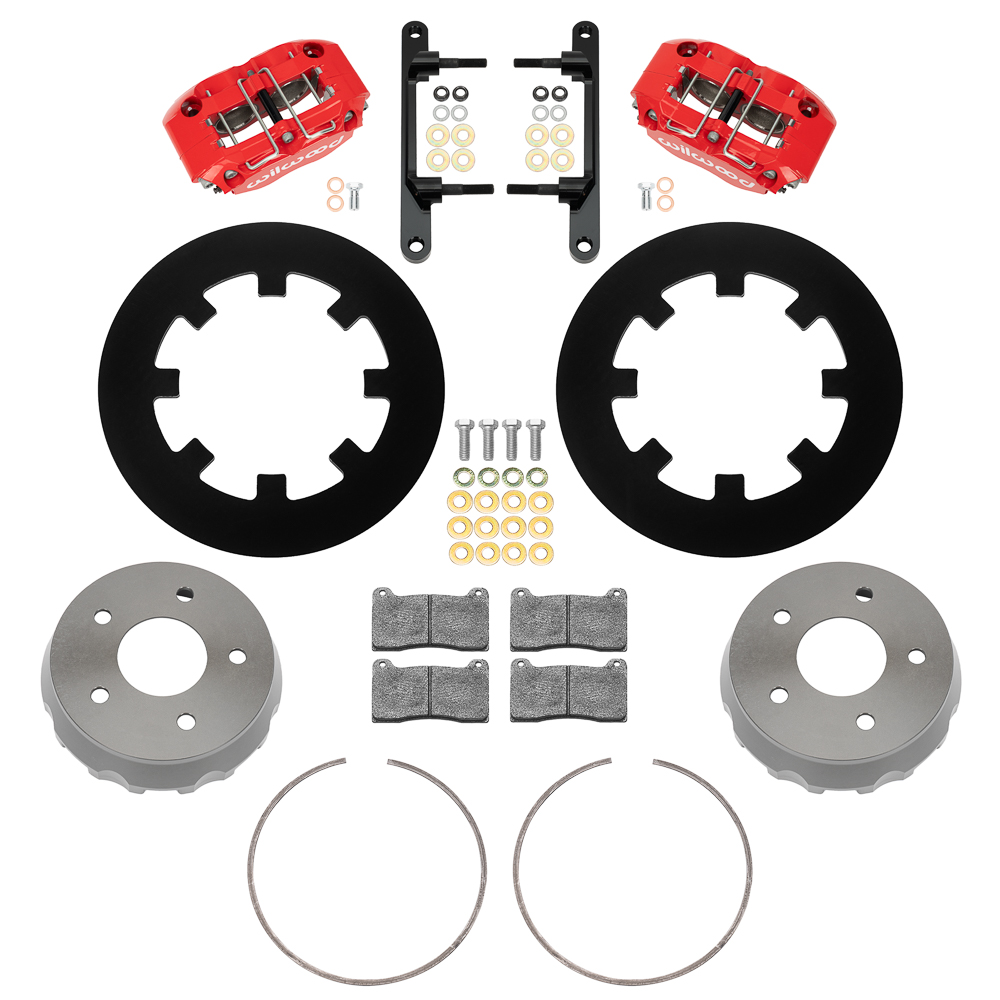 Zestaw Przednich Hamulców NDPR Front UTV (Czerwony) Zestaw przednich hamulców NDPR Front UTV w kolorze czerwonym został opracowany dla pojazdów typu side-by-side, zapewniając znaczący wzrost skuteczności hamowania oraz wysoką odporność termiczną w wymagających warunkach terenowych. Konstrukcja oparta jest na dynamicznie mocowanych tarczach oraz wzmocnionych, czterotłoczkowych zaciskach, które generują większą siłę docisku i poprawiają kontrolę nad pojazdem podczas jazdy z wyższą prędkością. Kute aluminiowe zaciski minimalizują ugięcia, zapewniając równomierne działanie i zwiększoną precyzję modulacji hamulca. Stalowe tarcze o zwiększonej średnicy oraz grubości ograniczają odkształcenia cieplne, a dynamiczny montaż tarcz zapobiega odsuwaniu tłoczków podczas jazdy po nierównościach. Podsumowanie zestawu Typ zwrotnicy: Disc Typ mocowania: Radial Typ zacisku: 4-tłoczkowy, Red Powder Coat Średnica tarczy: 11.25" Minimalna średnica felgi: 14" Elementy zestawu i specyfikacje Zaciski Lewy: nr części 120-17565-RD Prawy: nr części 120-17565-RD Typ: NDPR Wykończenie: Red Powder Coat Liczba tłoczków: 4 Średnice tłoczków (in): 1.75 / 1.75 / 0 Powierzchnia tłoczków (In²): 4.80 Materiał tłoczków: Stal nierdzewna Mocowanie: Radial Płytka klocka: 7812 Powierzchnia klocka (In²): 6.36 Objętość klocka (In³): 2.1 Mieszanka: BP-10 Tarcze Lewa: nr części 160-16515 Prawa: nr części 160-16515 Typ: Solid Steel Rotor Styl: Gładka powierzchnia Wykończenie: Black Electro Coat Materiał: Stal Średnica (in): 11.25 Szerokość (in): 0.25 Liczba żeber: Solid Typ konstrukcji: Solid Zahamowane: Nie Wyważanie dynamiczne: Nie Dzwon (Rotor Hat) Nr części: 170-17569 Typ: Big Brake Dynamic Lug Drive – Flared Bell Materiał: Aluminium Wykończenie: Type III Anodize Offset (in): 1.220 Rozstaw śrub 1: 5 × 4.50 Rozstawy śrub 2 i 3: — Średnica szpilek BC1 (in): 0.520 BC2 / BC3: 0.000