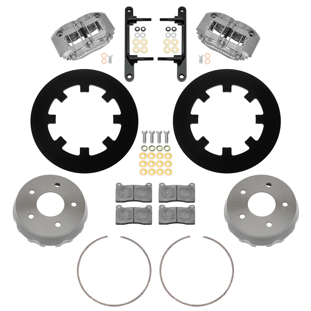 Zestaw Przednich Hamulców NDPR Front UTV Race Zestaw NDPR Front UTV Race to wysokowydajny układ hamulcowy zaprojektowany dla sportowych zastosowań w pojazdach typu side-by-side. Konstrukcja wykorzystuje dynamicznie mocowane tarcze oraz wzmocnione zaciski wielotłoczkowe, co zapewnia zwiększoną siłę hamowania oraz wysoką odporność na przegrzewanie podczas intensywnej jazdy. Kute aluminiowe zaciski czterotłoczkowe gwarantują minimalne ugięcie konstrukcji i bardziej jednorodne przenoszenie siły, co przekłada się na lepszą kontrolę i stabilność hamowania. Stalowe tarcze o zwiększonej średnicy i grubości cechują się mniejszą podatnością na odkształcenia cieplne, a dynamiczne mocowanie ogranicza zjawisko odpychania tłoczków w trudnym terenie. Podsumowanie zestawu Typ zwrotnicy: Disc Typ mocowania: Radial Typ zacisku: 4-tłoczkowy, Type III Anodize Średnica tarczy: 11.25" Minimalna średnica felgi: 14" Elementy zestawu i specyfikacje Zaciski Lewy: nr części 120-17565 Prawy: nr części 120-17565 Typ: NDPR Wykończenie: Type III Anodize Liczba tłoczków: 4 Średnice tłoczków (in): 1.75 / 1.75 / 0 Powierzchnia tłoczków (In²): 4.80 Materiał tłoczków: Stal nierdzewna Mocowanie: Radial Płytka klocka: 7812 Powierzchnia klocka (In²): 6.36 Objętość klocka (In³): 2.1 Mieszanka: BP-28 Tarcze Lewa: nr części 160-16515 Prawa: nr części 160-16515 Typ: Drilled Steel Rotor Styl: Gładka powierzchnia Wykończenie: Black Electro Coat Materiał: Stal Średnica (in): 11.25 Szerokość (in): 0.25 Liczba żeber: Solid Typ konstrukcji: Solid Zahamowane: Nie Wyważanie dynamiczne: Nie Dzwon (Rotor Hat) Nr części: 170-17569 Typ: Big Brake Dynamic Lug Drive – Flared Bell Materiał: Aluminium Wykończenie: Type III Anodize Offset (in): 1.220 Rozstaw śrub 1: 5 × 4.50 Rozstawy śrub 2 i 3: — Średnica szpilek BC1 (in): 0.520 BC2 / BC3: 0.000