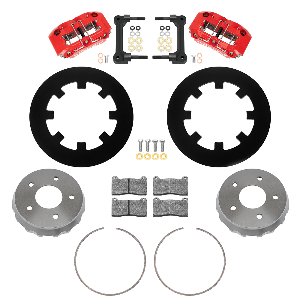 Zestaw Tylnych Hamulców NDPR Rear UTV (Czerwony) Zestaw NDPR Rear UTV Red został zaprojektowany z myślą o zwiększonej wydajności hamowania w pojazdach side-by-side, szczególnie tych o wyższej mocy. System łączy dynamicznie mocowane tarcze z czterotłoczkowymi zaciskami o większej sile docisku, zapewniając lepsze wytracanie prędkości, wyższą stabilność i skuteczność w trudnych warunkach terenowych. Kute aluminiowe zaciski minimalizują odkształcenia konstrukcji podczas intensywnego hamowania, a równomierne zaangażowanie tłoczków poprawia precyzję modulacji. Tarcze stalowe o powiększonej średnicy i grubości są bardziej odporne na deformacje cieplne, zaś ich dynamiczne mocowanie zmniejsza ryzyko odsuwania tłoczków na nierównym terenie. Podsumowanie zestawu Typ zwrotnicy: — Typ mocowania: Radial Typ zacisku: 4-tłoczkowy, Red Powder Coat Średnica tarczy: 11.25" Minimalna średnica felgi: 14" Elementy zestawu i specyfikacje Zaciski Lewy: nr części 120-17783-RD Prawy: nr części 120-17783-RD Typ: NDPR Wykończenie: Red Powder Coat Liczba tłoczków: 4 Średnice tłoczków (in): 1.25 / 1.25 / 0 Powierzchnia tłoczków (In²): 2.46 Materiał tłoczków: Stal nierdzewna Mocowanie: Radial Płytka klocka: 7812 Powierzchnia klocka (In²): 6.36 Objętość klocka (In³): 2.1 Mieszanka: BP-10 Tarcze Lewa: nr części 160-16515 Prawa: nr części 160-16515 Typ: Solid Steel Rotor Styl: Gładki Wykończenie: Black Electro Coat Materiał: Stal Średnica (in): 11.25 Szerokość (in): 0.25 Konstrukcja: Solid Zahamowane: Nie Wyważanie dynamiczne: Nie Dzwon (Rotor Hat) Nr części: 170-17745 Typ: Big Brake Dynamic Lug Drive – Short Offset Materiał: Aluminium Wykończenie: Type III Anodize Offset (in): 0.730 Rozstaw śrub 1: 5 × 4.50 Średnica szpilek BC1 (in): 0.520 BC2 / BC3: 0.000