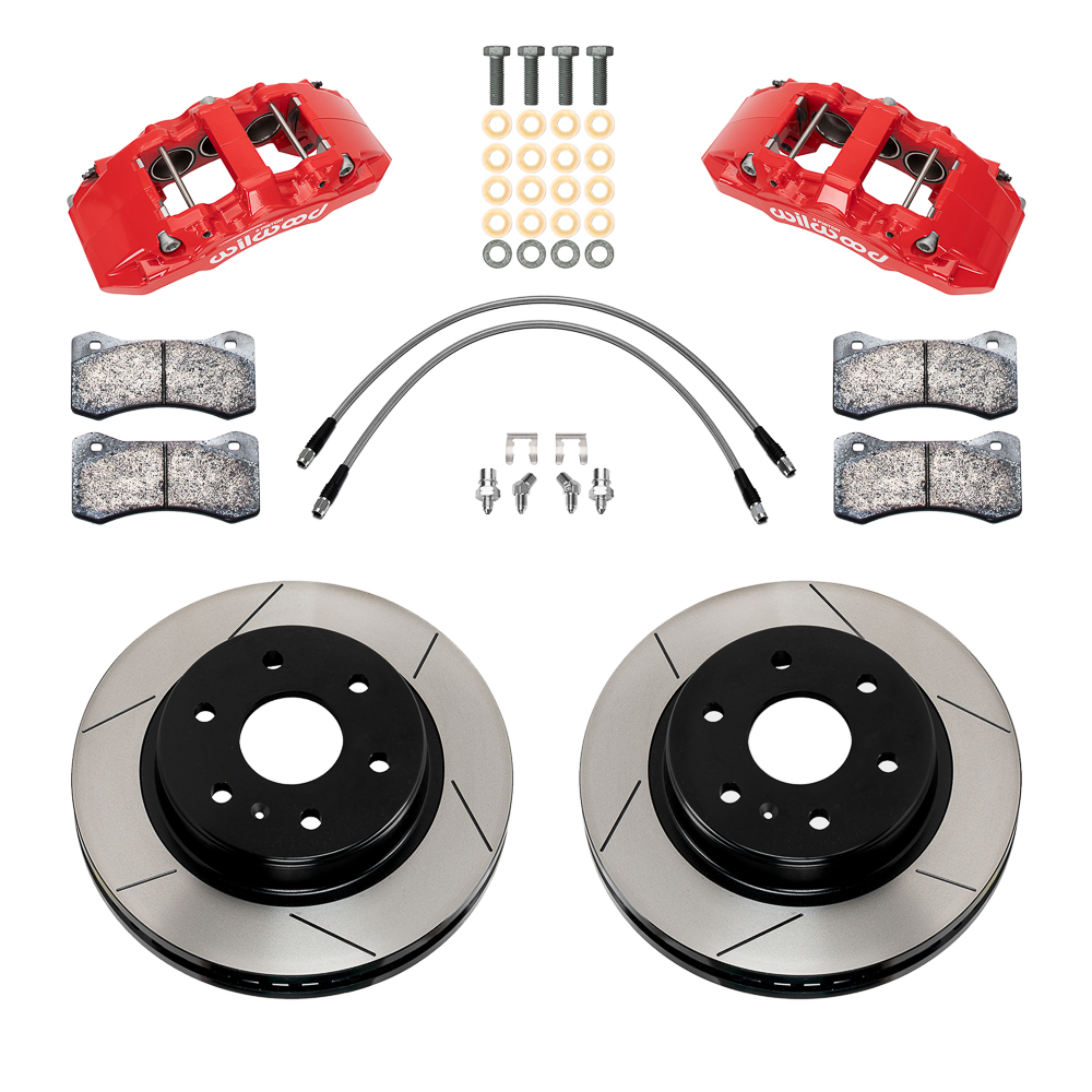 Przedni zestaw hamulcowy AERO6-DM Direct-Mount AERO6-DM Direct-Mount Truck Front Brake Kit to wysokowydajny zestaw hamulcowy zaprojektowany jako bezpośrednio montowane rozwiązanie o dużej pojemności roboczej, przeznaczone do pojazdów o wysokiej masie i wymagających zastosowań. Zaciski AERODM z sześcioma tłoczkami współpracują z tarczami o dużej średnicy, zapewniając maksymalną skuteczność hamowania w warunkach dużego obciążenia. Dla samochodów typu truck i SUV zestaw oferuje znacznie zwiększoną siłę hamowania podczas holowania, jazdy off-road oraz przy modernizacjach kół i opon. Dedykowane komplety zachowują pełną kompatybilność z fabryczną pompą hamulcową oraz działaniem układu ABS. Jednoczęściowe tarcze w stylu OEM o średnicy od 13.25" do 13.56" zapewniają wysoką odporność termiczną i skuteczne chłodzenie przy długotrwałym hamowaniu w wysokich temperaturach. Zestaw przeznaczony jest dla Mercedes-Benz Sprinter 2500 AWD (2022–2024) i wymaga minimalnej średnicy felgi 17". Podsumowanie zestawu Typ zwrotnicy: fabryczna zwrotnica tarczowa Typ montażu: lug Typ zacisku: 6-tłoczkowy, czerwony lakier proszkowy Średnica tarczy (in): 13.25 Minimalna średnica felgi: 17" Kompatybilne pojazdy Mercedes-Benz Sprinter 2500 2022–2024 AWD Zaciski hamulcowe Lewy zacisk — nr części: 120-17953-RD Prawy zacisk — nr części: 120-17952-RD Typ: AERODM Kolor: Red Powder Coat Liczba tłoczków: 6 Typ tłoczków: stal nierdzewna Powierzchnia tłoczków (in²): 6.52 Średnica tłoczka 1 (in): 1.75 Średnica tłoczka 2 (in): 1.62 Średnica tłoczka 3 (in): 1.62 Typ montażu: lug Klocki hamulcowe Płyta klocka: 6617 Powierzchnia klocków (in²): 11.1 Objętość klocków (in³): 5.2 Mieszanka: BP-Q Tarcze hamulcowe Lewa tarcza — nr części: 160-17898-GTB Prawa tarcza — nr części: 160-17898-GTB Typ: wentylowana tarcza GTB z kapeluszem Wzór: GT Slotted Wykończenie powierzchni: Black Electro Coat Materiał: żeliwo Średnica zewnętrzna (in): 13.25 Szerokość (in): 1.25 Liczba kanałów wentylacyjnych: 48 Wyważanie dynamiczne: tak