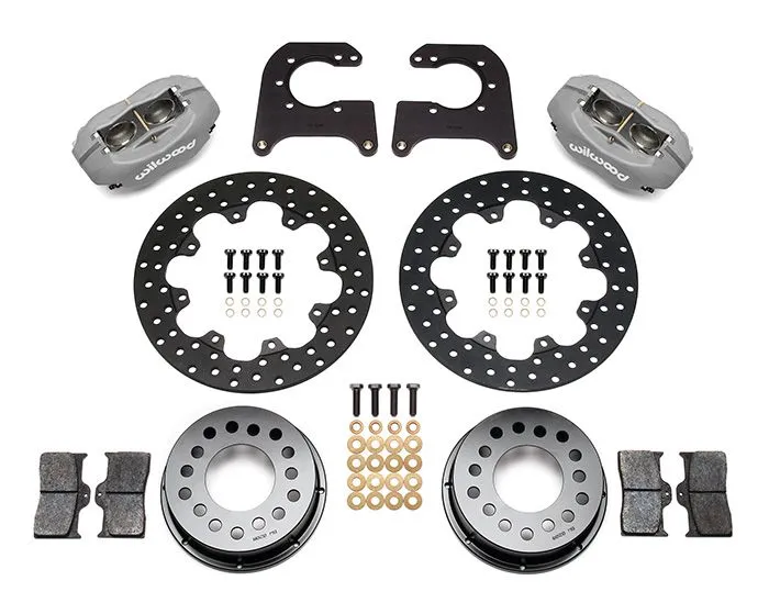 Zestaw Hamulców Tylnych Forged Dynalite Rear Drag Zestawy FDL Rear Drag to w pełni montażowe zestawy typu bolt-on, przeznaczone do popularnych tylnych osi muscle carów oraz osi aftermarketowych wyposażonych w niestandardowe zakończenia półosi. Opracowano je z myślą o pojazdach kategorii sportsman oraz innych samochodach korzystających z kompletnego układu czterech hamulców tarczowych. W zależności od rodzaju zakończenia obudowy osi i offsetu półosi, odpowiednie mocowania umożliwiają stabilną instalację czterotłoczkowego, kutego zacisku Dynalite nad stalową tarczą 3/8", zamocowaną na piaście za pomocą aluminiowego dzwonu. Standardowe zestawy wyposażone są w pełne tarcze, natomiast opcjonalne wersje z tarczami nawiercanymi zapewniają dalszą redukcję masy układu napędowego w klasach wyścigowych, gdzie każdy gram ma znaczenie. Podsumowanie zestawu Typ tylnego mostu: 12 Bolt Special Offset półosi: 2.91 Typ mocowania: Lug Typ zacisku: 4-tłoczkowy, anodowanie Type III Średnica tarczy: 11.44" Minimalna średnica felgi: 15" Elementy zestawu i specyfikacje Zaciski Lewy: nr części 120-13843 Prawy: nr części 120-13843 Typ: Forged Dynalite Internal Wykończenie: Type III Anodize Liczba tłoczków: 4 Średnica tłoczków (in): 1.75 / 1.75 Powierzchnia tłoczków (In²): 4.80 Materiał tłoczków: Stal nierdzewna Mocowanie: Lug Typ płytki klocka: 7112 Powierzchnia klocka (In²): 6.36 Objętość klocka (In³): 2.1 Mieszanka: BP-10 Tarcze Lewa: nr części 160-1601 Prawa: nr części 160-1601 Typ: Tarcza stalowa nawiercana Styl: Nawiercana Wykończenie powierzchni: Black Oxide Materiał: Stal Średnica zewnętrzna (in): 11.44 Szerokość (in): 0.35 Liczba żeber: Pełna (solid) Typ konstrukcji: Solid Wypalanie: Nie Wyważanie dynamiczne: Nie Dzwony (Rotor Hats) Nr części: 170-0208 Typ: Drag Hat – standardowy Materiał: Aluminium Wykończenie: Black E-Coat Odsadzenie (in): 1.960 Rozstaw otworów 1: 5 × 4.50 Rozstaw otworów 2: 5 × 4.75 Rozstaw otworów 3: 5 × 5.00 Średnica szpilek BC1 (in): 0.520 Średnica szpilek BC2 (in): 0.520 Średnica szpilek BC3 (in): 0.520