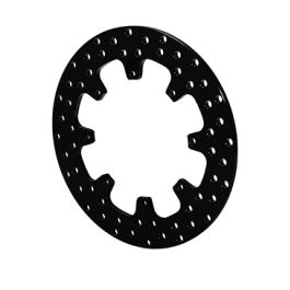 Wiercona stalowa tarcza hamulcowa Stalowe tarcze hamulcowe znajdują zastosowanie w niemal wszystkich formach sportów motorowych. Stanowią trwałe i jednocześnie lekkie rozwiązanie do zastosowań, w których długotrwałe temperatury pracy utrzymują się w niskim lub umiarkowanym zakresie, a wysokie skoki temperatur występują jedynie okresowo. Typowe przykłady to samochody drag racingowe intensywnie hamujące na końcu ćwierć mili lub pojazdy typu stock car zjeżdżające po przejeździe kwalifikacyjnym na superszybkich torach. Tarcze stalowe są również powszechnie stosowane w lekkich pojazdach jednomiejscowych, takich jak sprinty, modyfikowane auta torowe oraz lekkie bolidy wyścigowe przeznaczone do jazdy po torach drogowych. Zastosowanie specjalnego stopu stali oraz opatentowanych procesów produkcyjnych zapewnia wysoką odporność na odkształcenia termiczne, a także bardzo dobre właściwości cierne i odporność na zużycie we współpracy z klockami hamulcowymi. Charakterystyka użytkowa Zalecane zastosowanie: drag racing / wyścigi na nawierzchniach szutrowych Produkt nieprzeznaczony do użytku drogowego Wymiary tarczy Szerokość: 0,35″ Średnica: 12,00″ Strona montażowa: Non_Direct Konstrukcja tarczy Materiał: stal Typ kanałów wentylacyjnych: pełna (solid) Masa: 5,40 lbs Typ i wykończenie tarczy Typ: pełna Styl: wiercona Wykończenie powierzchni: czarna powłoka elektroforetyczna Opcje ulepszeń tarczy Burnished: nie Wyważana: nie Dodatkowe wymiary tarczy Rozstaw śrub: 8 × 7,00″ Średnica otworu montażowego: 0,326″ Średnica centrująca (Lug ID / Registration): 6,38″ Wewnętrzna średnica po stronie przeciwnej: — Offset: — Dodatkowe informacje Montaż dynamiczny jest najskuteczniejszą metodą eliminacji naprężeń termicznych oraz odkształceń w stalowych tarczach hamulcowych. Tarcze są obrabiane z podłużnymi otworami montażowymi, które współpracują ze specjalnymi nakrętkami typu T oraz dedykowanymi zestawami śrub. Takie rozwiązanie umożliwia niezależne rozszerzanie i kurczenie się tarczy względem kapelusza lub piasty podczas zmian temperatury. Dzięki temu eliminowane są naprężenia i blokowanie w punktach montażowych, tarcza pracuje osiowo, jej żywotność jest wydłużona, a dodatkowe obciążenia elementów montażowych zostają wyeliminowane. Montaż dynamiczny jest szczególnie zalecany w zastosowaniach, w których występują krótkotrwałe, lecz bardzo intensywne skoki temperatury powodujące wysoką rozszerzalność stali. Wilwood oferuje również kapelusze i płyty montażowe z podłużnymi otworami, umożliwiające uzyskanie efektu „pływania” przy standardowych tarczach z otworami okrągłymi. Jednak tarcze z tej kategorii są przeznaczone do montażu stałego, w którym mechanizm kompensacji rozszerzalności znajduje się bezpośrednio w tarczy.