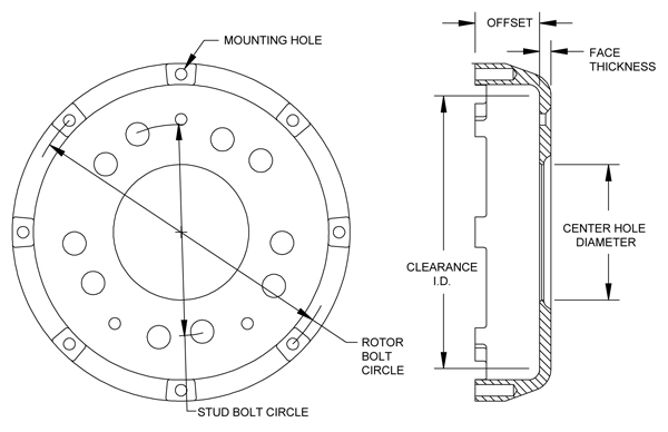 Dzwon Hamulcowy Big Brake z Krótkim Offsetem 1.430 Dzwony hamulcowe Big Brake Short Offset z serii GT są precyzyjnie obrabiane z wysokowytrzymałych stopów aluminium, co pozwala uzyskać doskonałą sztywność przy jednoczesnym ograniczeniu masy. Wyposażone w gwintowane otwory montażowe, współpracują zarówno ze standardowymi tarczami montowanymi przelotowo, jak i tarczami dynamicznymi z frezowanymi otworami, gdy stosowane są tuleje T-Nuts lub bobbiny. W połączeniu z dedykowanym osprzętem Wilwood dzwony GT zapewniają stabilną i niezawodną pracę nawet w najbardziej wymagających warunkach. Model Short Offset jest przeznaczony do instalacji w miejscach o ograniczonej przestrzeni, gdzie offset wynosi mniej niż 1.00". Dostępny jest w popularnych wzorach cztero- i pięciośrubowych, kompatybilnych z większością układów tarczowych. Wymiary dzwonu (Hat Dimensions) Typ otworu montażowego: Gwintowany Rozstaw śrub tarczy (in): 8 × 7.00 Offset dzwonu (in): 1.430 Średnica centrująca (in): 3.00 Typ dzwonu (Hat Type) Materiał: Aluminium Styl montażu: Fixed Mount Wykończenie: Black E-Coat Waga (lbs): 1.800 Rozstawy śrub (Bolt Circle Dimensions) Bolt Circle 1: 5 × 4.50 Bolt Circle 2: 5 × 4.75 Bolt Circle 3: — Informacje aplikacyjne (Application Info) Zastosowanie: 55–57 Chevy Zestaw śrub: 230-8390 Dodatkowe wymiary (Additional Hat Dimensions) Rozmiar otworów montażowych tarczy (in): 5/16-18 Clearance I.D. (in): 6.04 Grubość czoła (in): 0.25 Średnica szpilek – BC1 (in): 0.520 Średnica szpilek – BC2 (in): 0.520 Dodatkowe informacje (Additional Notes) Dzwon posiada trzy pogłębione otwory przygotowane do montażu śrub kotwiących stosowanych w wybranych piastach Wilwood. Zalecane śruby: 230-7032 (6 × 1/4-20 × .50, łeb stożkowy, gniazdo imbusowe).