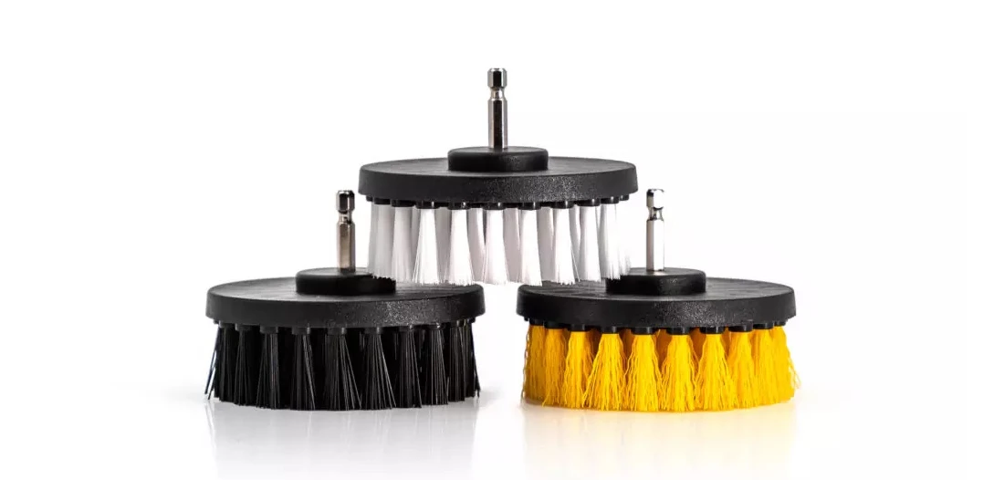 DRILL BRUSH – ta szczotka to niezastąpione narzędzie do szybkiego i skutecznego czyszczenia tapicerki, dywaników, okładziny podłogi, wykładzin np. bagażnika a także wszystkich innych materiałowych/tapicerowanych elementów auta. Wystarczy, że zamontujesz szczotkę na wiertarce lub wkrętarce, zintegrowany trzon sprawia, że nie musisz szukać dodatkowej przejściówki więc od razu możesz rozpocząć pracę. Specjalnie dobrana struktura włosia zapewnia całkowite bezpieczeństwo dla czyszczonego materiału, nie zadziera materiału ani go nie mechaci, nie wpływa negatywnie nawet na delikatne sploty tkanin. Mimo to włosie to jest odporne na pracę na maksymalnych obrotach, co bardzo przyspiesza pracę nawet przy mocno zabrudzonych powierzchniach przy minimalnym trudzie użytkowania. Uchwyt szczotki wykonany jest z tworzywa bezpiecznego dla kontaktu z innymi elementami. Na skutek przemoczenia szczotek podstawa nie pęka i nie wykrzywia się co może wystepować w podobnych szczotkach o konstrukcji drewnianej, która nie jest tak odporna na działanie środków chemicznych. Chromowany uchwyt heks pasuje do większości wkretarek dostępnych na rynku. Największą zaletą Drilla jest możliwośc pracy na mokro, zarówno przy rozprowadzaniu pre spaya jak i bonetowaniu, ale również na sucho np. do usunięcia piasku z tapicerki. Możesz, też używać jej do zastosowań poza motoryzacyjnych m.in prania dywanów, pooszyć krzeseł czy kanap. Dostępny jest w 3 różnych twardościach: soft/medium/hard GŁÓWNE CECHY: Średnica: 10 cm Długość włosia: 3 cm Uchwyt: sześciokątny, zintegrowany Twardość : hard/medium/soft Mocowanie: 1/4′ Zastosowanie: tapicerka, dywaniki, okładziny podłogi, wykładziny bagażnika, inne elementy tapicerowane