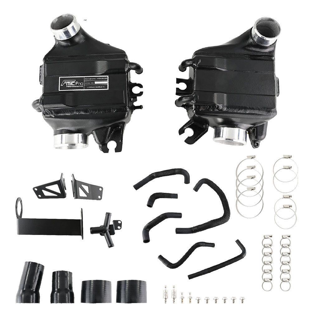 Wymiennik ciepła Chargecooler Radiator FMIC.Pro Infiniti Q50/Q60 3.0T Jednostka napędowa 3.0T wyposażona jest w dwa wymienniki ciepła powietrze-woda, umieszczone nad silnikiem. Takie rozwiązanie sprawdza się w przypadku silników seryjnych. W samochodach tuningowanych, sportowych oraz po modyfikacjach jednostki napędowej, sytuacja wygląda jednak inaczej. Podczas intensywnej jazdy lub użytkowania na torze, oryginalny układ chłodzenia nie jest wystarczająco wydajny. Utrzymanie optymalnej temperatury pracy silnika staje się wtedy znacznie trudniejsze. Seryjne chłodnice wyposażone są w cienkie aluminiowe rdzenie oraz obudowy z tworzywa sztucznego, co ogranicza ich zdolność do efektywnego odprowadzania ciepła. Wysokowydajne chłodnice FMIC.Pro zostały zaprojektowane z myślą o tuningu – ich konstrukcja opiera się na wytrzymałych materiałach i zoptymalizowanej geometrii rdzenia, co zapewnia wyższą sprawność chłodzenia oraz niezawodność. Cechy produktu: – Wydajniejszy podwójny rdzeń chłodnicy – zwiększona o 25% objętość względem seryjnej konstrukcji poprawia zdolność odprowadzania ciepła i redukuje ryzyko przegrzania silnika – Większa pojemność cieczy chłodzącej – przekłada się na stabilniejsze temperatury pracy, nawet przy dużych obciążeniach termicznych – Konstrukcja w pełni aluminiowa – zapewnia lepsze właściwości termiczne, odporność na korozję oraz wysoką wytrzymałość mechaniczną – Dokładność wykonania – precyzyjne dopasowanie elementów i powtarzalność wymiarowa dla łatwego montażu – Dedykowana konstrukcja – chłodnica została zaprojektowana specjalnie do silnika Infiniti 3.0T , dzięki czemu zapewnia pełną kompatybilność z seryjnym układem chłodzenia – Kompletny zestaw montażowy – uchwyty, łączniki i redukcję silikonowe, obejmy, przewody układu wodnego z trójnikiem i śruby Intercoolery dedykowane do: Infiniti Q50 Premium 2016-2017 Infiniti Q50 Pure 2020-2021 Infiniti Q50 Sport 2016-2020 Infiniti Q60 Premium 2017 Infiniti Q60 Pure 2019-2022 Infiniti Q60 Sport 2017-2018
