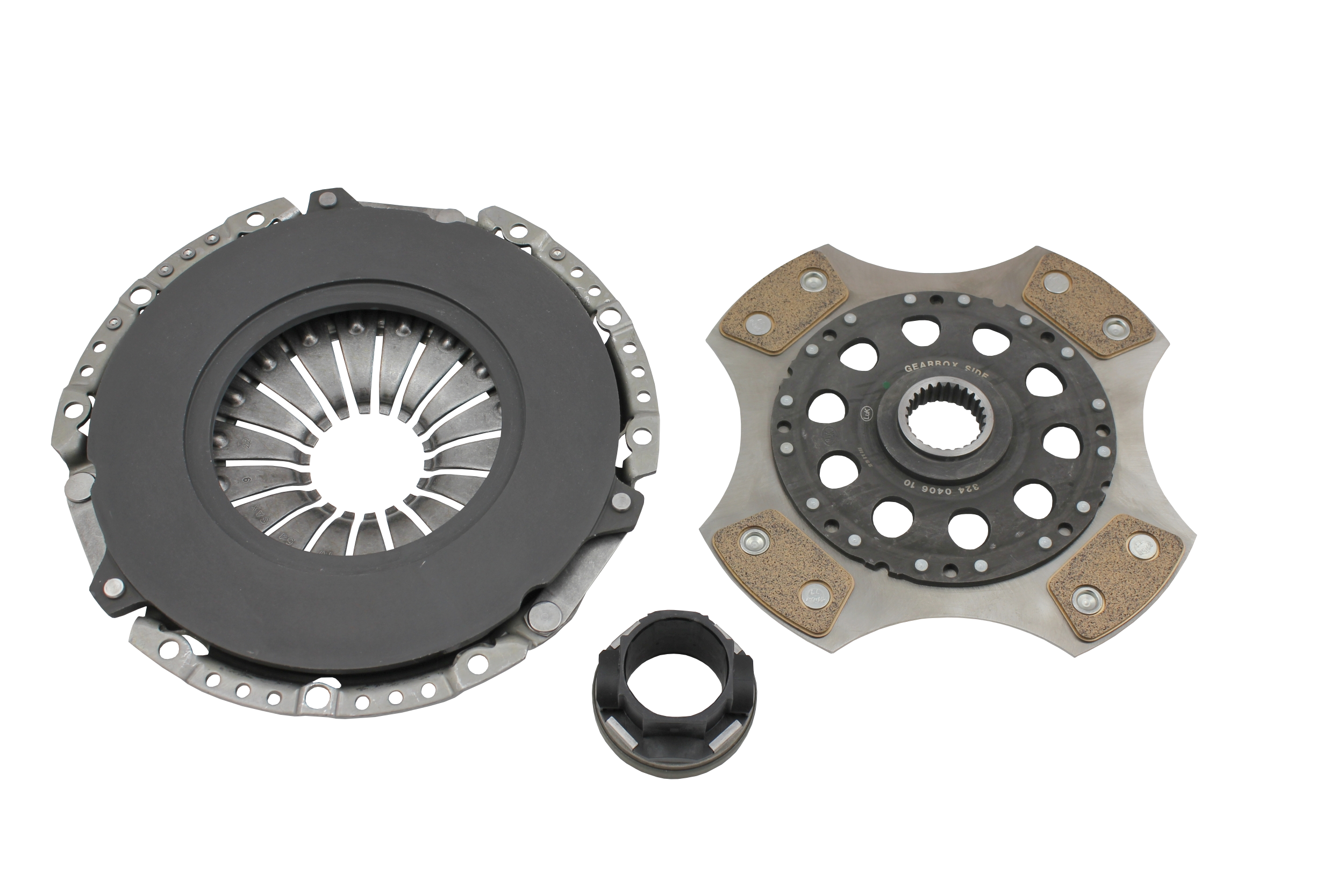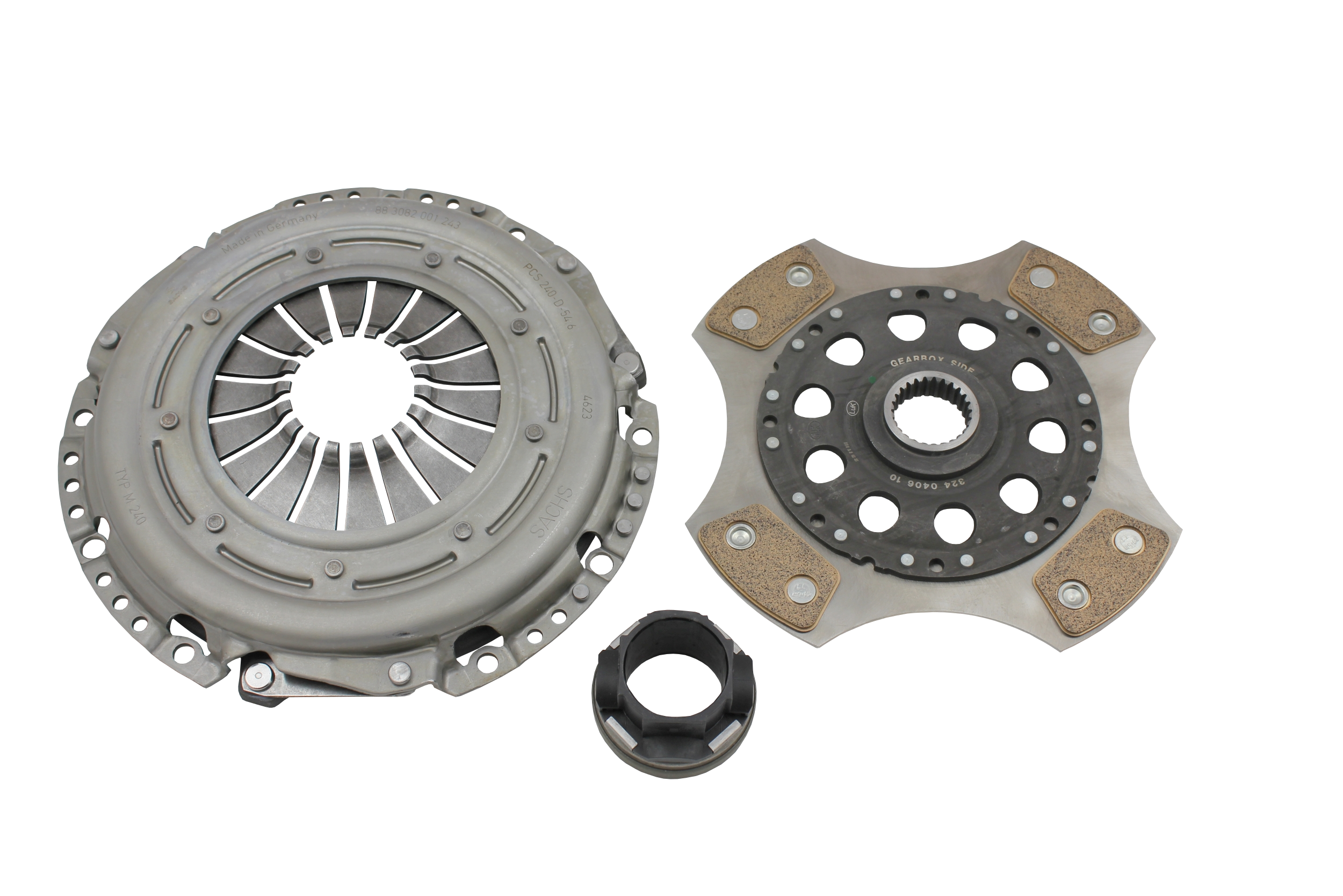 Wzmocnione sprzęgło BMW M57N M57N2 N57 - STAGE 2 Wzmocnione sprzęgło przeznaczone dla silników BMW M57N M57N2 N57 oraz 6 biegowej skrzyni BMW GS6-53DZ (HGA, HGD, HGU, HGK, JGA, JGG, JGL i inne) Bezpośredni montaż plug and play na oryginalnym dwumasowym kole zamachowym Docisk sprzegła Sachs Performance 883082001243 - pedał sprzęgła pracuje ciężej o około 25% od oryginalnego docisku Spiekowa, 4 łopatkowa tarcza sprzęgła na nierdzewnym podkładzie, obita okładzinami MIBA Śruby mocujące do docisku sprzęgła oraz łożysko oporowe w zestawie Dla zapewnienia poprawnego działania sprzęgła wymagane nowe koło zamachowe lub wykonanie szlifu powierzchni ciernej starego koła dwumasowego (maksymalnie do 0.1 mm od nominału). Zestaw wymaga przejścia procedury docierania - od 5-6 tyś zmian biegów Potencjał 800-900 Nm w zależności od agresywności mapy doładowania, sposobu użytkowania oraz trakcyjności opon. Ze względu na spiekową tarczę sprzęgła, zestaw ten nie pozwoli na płynne ruszenie z miejsca na 1 lub wstecznym biegu. Jego charakter jest bardziej zbliżony do pracy 0-1 (potrafi podszarpywać przy ruszaniu z miejsca). Łagodniejszą alternatywą jest wersja 6 łopatkowa, dostępna na innym ogłoszeniu.