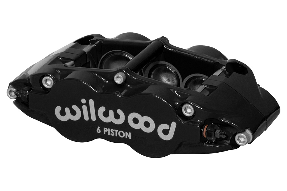 Kuty Wąski Superlite 6 z Mocowaniem Promieniowym Kuty Wąski Superlite 6R (FNSL6R) to najnowsza wersja cenionej serii zacisków Superlite, wzbogacona o wszechstronność i wygodę wynikającą z zastosowania mocowania promieniowego. Montaż radialny upraszcza adaptację oraz zapewnia dwie płaszczyzny regulacji, umożliwiające precyzyjne ustawienie zacisku względem tarczy hamulcowej. Zaciski łączą stylistykę typu „Big Brake” z najnowszymi technologiami Wilwood, generując wysoką siłę hamowania w ekstremalnych warunkach pracy oraz w szerokim zakresie zastosowań pojazdów. Wysoka skuteczność modelu FNSL6R wynika z wyjątkowo trwałej i wydajnej konstrukcji korpusu. Masa zacisku zaczyna się od 4,9 funta i jest efektem komputerowego modelowania bryłowego oraz analizy naprężeń metodą FEA. Najważniejszym elementem konstrukcyjnym jest proces kucia stress-flow. Każdy korpus powstaje z wysokogatunkowych kęsów stopu aluminium, a wewnętrzna struktura ziaren metalu zostaje ukierunkowana zgodnie z konturem zacisku. Eliminuje to naprężenia i nieciągłości charakterystyczne dla obróbki z litego bloku, zapewniając maksymalną wytrzymałość aluminiowego korpusu. Sześciotłoczkowa konfiguracja o zróżnicowanych średnicach cylindrów zapewnia zrównoważone obciążenie oraz równomierne zużycie klocków podczas długotrwałej pracy w wysokich temperaturach. Standardowe zaciski FNSL6R wyposażone są w jednoczęściowe tłoki ze stali nierdzewnej, charakteryzujące się wolnym przewodzeniem ciepła i wysoką odpornością na korozję. Opcjonalnie możliwe jest zastosowanie tłoków Thermlock, których wieloczęściowa konstrukcja tworzy skuteczną barierę termiczną, dodatkowo ograniczając transfer ciepła do korpusu zacisku, uszczelnień i płynu hamulcowego. Niższe temperatury robocze przekładają się na dłuższą żywotność komponentów oraz mniejsze ryzyko spadku skuteczności hamowania. Tłoki Liczba tłoków: 6 Całkowita powierzchnia tłoków: 4,86 in² Typ tłoków: stal nierdzewna Osłona przeciwpyłowa: brak Wymiary tarczy Szerokość tarczy: 1,10 in Średnica tarczy: 14,00 in Wymiary klocków Powierzchnia klocka: 8,2 in² Objętość klocka: 3,8 in³ Klasa obciążenia i materiał Materiał: kuty aluminium Masa: 5,0 lb Kolory i wykończenie Kolor: czarny Wykończenie: czarna powłoka proszkowa Mocowanie Typ mocowania: promieniowe Strona montażu: lewa Rozstaw montażowy: 5,98 in Zgodność z tarczami Minimalna szerokość tarczy: 1,00 in Maksymalna szerokość tarczy: 1,10 in Minimalna średnica tarczy: 11,75 in Maksymalna średnica tarczy: 14,00 in Specyfikacja klocków hamulcowych Typ klocka 1: 7416 Typ klocka 2: N-A Typ klocka 3: N-A Całkowita powierzchnia klocków: 8,2 in² Całkowita objętość klocków: 3,8 in³ Specyfikacja tłoków Średnica tłoka 1: 1,75 in Średnica tłoka 2: 1,25 in Średnica tłoka 3: 1,25 in Całkowita powierzchnia tłoków: 4,86 in² Specyfikacja montażowa Typ mocowania: promieniowe Strona montażu: lewa Rozstaw montażowy: 5,98 in Średnica otworu montażowego: 0,39 in Wysokość montażowa: 1,45 in Gwint przyłącza hydraulicznego: 1/8-27 NPT