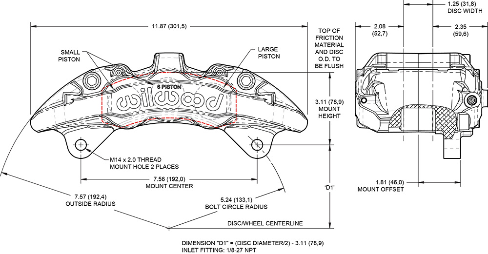 Zacisk hamulcowy AeroDM z mocowaniem Lug Nowy, kuty sześciotłoczkowy zacisk hamulcowy AeroDM zapewnia wysoką siłę hamowania w zastosowaniach drogowych oraz terenowych. Konstrukcja łączy technologie wyścigowe z korpusem o szerokim zakresie adaptacji. Dzięki zmiennej geometrii mocowania typu Lug, AeroDM umożliwia bezpośredni montaż do zwrotnicy w połączeniu z dedykowanymi tarczami o średnicy 13,38” w wielu nowoczesnych pojazdach typu truck. Dostępne warianty objętości tłoczków zapewniają elastyczność niezbędną do obsługi ciężkich układów hamulcowych. Model AeroDM stanowi najnowszą innowację w serii zacisków Aero4/6. Zastosowane wewnętrzne kanały przepływu płynu hamulcowego eliminują zewnętrzne rurki przelewowe, a masywny centralny mostek zwiększa sztywność całej konstrukcji. Korpus serii Aero wykonywany jest w procesie kucia typu stress-flow z wysokogatunkowego stopu aluminium. Technologia ta ukierunkowuje strukturę ziaren metalu zgodnie z konturem zacisku, eliminując naprężenia i przerwania struktury charakterystyczne dla obróbki z litego bloku. Efektem jest zacisk o wysokiej efektywności docisku oraz wyjątkowej odporności na zmęczenie materiału, naprężenia i odkształcenia pod obciążeniem. Tłoczki Liczba tłoczków: 6 Całkowita powierzchnia tłoczków (in²): 6,52 Typ tłoczków: stal nierdzewna Osłona przeciwpyłowa: brak Wymiary tarczy Szerokość tarczy (in): 1,25 Średnica tarczy (in): 13,38 Wymiary klocków Powierzchnia klocków (in²): 11,1 Objętość klocków (in³): 5,2 Klasa zastosowania i materiał Materiał: kute aluminium Masa (lbs): 8,7 Kolory i wykończenie Kolor: czarny Wykończenie: czarna powłoka proszkowa Mocowanie Rozstaw mocowania (in): 7,56 Strona montażu: lewa Typ mocowania: Lug Specyfikacja Kompatybilność tarcz Nominalna szerokość tarczy (in): 1,25 Maksymalna szerokość tarczy (in): 1,28 Minimalna szerokość tarczy (in): 1,10 Maksymalna średnica tarczy (in): 13,38 Minimalna średnica tarczy (in): 12,19 Specyfikacja klocków hamulcowych Typ klocków 1: 6617 Typ klocków 2: N-A Typ klocków 3: N-A Całkowita powierzchnia klocków (in²): 11,1 Całkowita objętość klocków (in³): 5,2 Specyfikacja tłoczków Średnica tłoczka 1 (in): 1,75 Średnica tłoczka 2 (in): 1,62 Średnica tłoczka 3 (in): 1,62 Całkowita powierzchnia tłoczków (in²): 6,52 Specyfikacja montażowa Typ mocowania: Lug Strona montażu: lewa Rozstaw mocowania (in): 7,56 Średnica otworów montażowych (in): 0,55 Gwint przyłącza hydraulicznego: 1/8-27 NPT