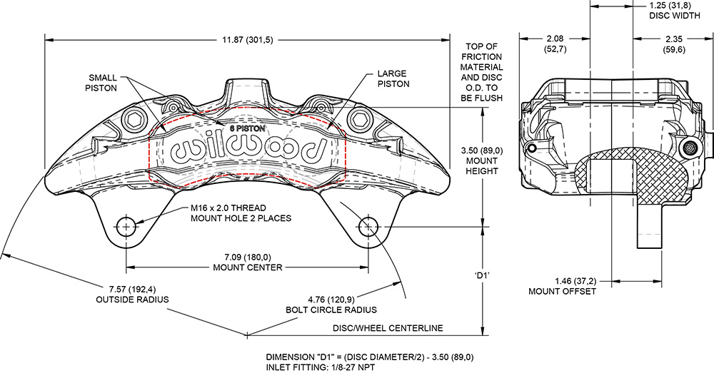 Zacisk hamulcowy AeroDM z mocowaniem Lug Nowy, kuty zacisk hamulcowy AeroDM z sześcioma tłoczkami zapewnia wysoką skuteczność hamowania w zastosowaniach drogowych i terenowych. Konstrukcja łączy technologie wyścigowe z uniwersalnym korpusem o szerokim zakresie adaptacji. Dzięki zmiennej geometrii mocowania Lug, zacisk AeroDM umożliwia bezpośredni montaż do zwrotnicy z dedykowanymi tarczami o średnicy 13,38” w wielu nowoczesnych pojazdach typu truck. Różne konfiguracje objętości tłoczków zapewniają elastyczność niezbędną do obsługi ciężkich układów hamulcowych. Model AeroDM stanowi najnowszą innowację w serii zacisków Aero4/6. Został zaprojektowany z wewnętrznymi kanałami płynu hamulcowego, które eliminują zewnętrzne rurki przelewowe, oraz z masywnym centralnym mostkiem zwiększającym sztywność konstrukcji. Korpus serii Aero jest wytwarzany w procesie kucia typu stress-flow z wysokogatunkowego stopu aluminium. Proces ten powoduje ukierunkowanie struktury ziaren metalu zgodnie z kształtem zacisku, eliminując naprężenia i przerwania struktury typowe dla obróbki z litego bloku. Efektem jest zacisk o bardzo wysokiej efektywności docisku oraz wyjątkowej odporności na zmęczenie materiału, naprężenia i odkształcenia pod obciążeniem. Tłoczki Liczba tłoczków: 6 Całkowita powierzchnia tłoczków (in²): 6,52 Typ tłoczków: stal nierdzewna Osłona przeciwpyłowa: brak Wymiary tarczy Szerokość tarczy (in): 1,25 Średnica tarczy (in): 13,38 Wymiary klocków Powierzchnia klocków (in²): 11,1 Objętość klocków (in³): 5,2 Klasa zastosowania i materiał Materiał: kute aluminium Masa (lbs): 8,9 Kolory i wykończenie Kolor: czarny Wykończenie: czarna powłoka proszkowa Mocowanie Rozstaw mocowania (in): 7,09 Strona montażu: lewa Typ mocowania: Lug Specyfikacja Kompatybilność tarcz Nominalna szerokość tarczy (in): 1,25 Maksymalna szerokość tarczy (in): 1,28 Minimalna szerokość tarczy (in): 1,10 Maksymalna średnica tarczy (in): 13,38 Minimalna średnica tarczy (in): 12,19 Specyfikacja klocków hamulcowych Typ klocków 1: 6617 Typ klocków 2: N-A Typ klocków 3: N-A Całkowita powierzchnia klocków (in²): 11,1 Całkowita objętość klocków (in³): 5,2 Specyfikacja tłoczków Średnica tłoczka 1 (in): 1,75 Średnica tłoczka 2 (in): 1,62 Średnica tłoczka 3 (in): 1,62 Całkowita powierzchnia tłoczków (in²): 6,52 Specyfikacja montażowa Typ mocowania: Lug Strona montażu: lewa Rozstaw mocowania (in): 7,09 Średnica otworów montażowych (in): 0,63 Gwint przyłącza hydraulicznego: 1/8-27 NPT