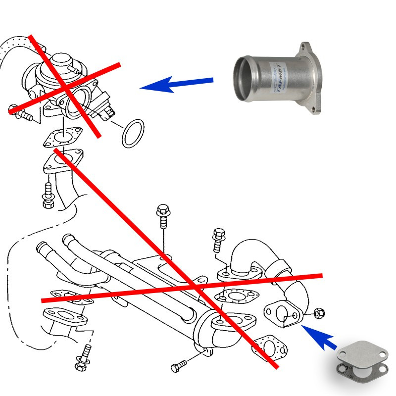 W przypadku usunięcia chłodnicy spalin trzeba połączyć ze sobą lub zaślepić węże z płynem chłodzącym.