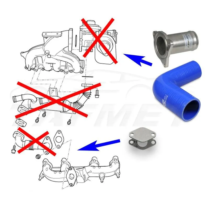 Zastosowanie: Audi: A3 1.9 TDI, 74 kW, silniki: ATD, AXR A3 1.9 TDI, 77 kW, silniki: BKC, BXE A3 2.0 TDI, 100 kW, silniki: AZV, BKD A3 2.0 TDI, 103 kW, silniki: AZV, BKD A3 quattro 2.0 TDI, 100 kW, silniki: AZV, BKD A3 quattro 2.0 TDI, 103 kW, silniki: AZV, BKD Seat: Altea 1.9 TDI, 66 kW, silniki: BXF, BRU Altea 1.9 TDI, 77 kW, silniki: BXE, BKC Altea 2.0 TDI, 100 kW, silniki: AZV, BKD Altea 2.0 TDI, 103 kW, silniki: AZV, BKD Altea XL 1.9 TDI, 66 kW, silniki: BXF, BRU Altea XL 1.9 TDI, 77 kW, silniki: BXE, BKC Altea XL 2.0 TDI, 100 kW, silniki: AZV, BKD Altea XL 2.0 TDI, 103 kW, silniki: AZV, BKD Cordoba 1.9 TDI, 74 kW, silnik: AXR Cordoba 1.9 TDI, 96 kW, silnik: BLT Ibiza IV 1.9 TDI, 74 kW, silnik: AXR Ibiza IV 1.9 TDI, 96 kW, silnik: BLT Leon 1.9 TDI, 66 kW, silniki: BXF, BRU Leon 1.9 TDI, 74 kW, silnik: AXR Leon 1.9 TDI, 77 kW, silniki: BKC, BXE Leon 2.0 TDI, 103 kW, silniki: AZV, BKD Toledo III 1.9 TDI, 77 kW, silniki: BKC, BXE Toledo III 2.0 TDI, 100 kW, silniki: AZV, BKD Toledo III 2.0 TDI, 103 kW, silniki: AZV, BKD Skoda: Fabia I 1.9 TDI, 74 kW, silnik: AXR Fabia I 1.9 TDI, 96 kW, silnik: BLT Octavia I 1.9 TDI, 74 kW, silnik: AXR Octavia II 1.9 TDI, 77 kW, silniki: BKC, BXE Octavia II 2.0 TDI, 103 kW, silniki: AZV, BKD Superb II 1.9 TDI, 77 kW, silnik: BXE Roomster 1.9 TDI, 74 kW, silnik: AXR Volkswagen: Bora 1.9 TDI, 74 kW, silnik: AXR Golf IV 1.9 TDI, 74 kW, silnik: AXR, ATD Golf V 1.9 TDI, 66 kW, silniki: BXF, BRU Golf V 1.9 TDI, 77 kW, silniki: BKC, BXE Golf V 2.0 TDI, 103 kW, silniki: AZV, BKD Golf Plus 1.9 TDI, 66 kW, silniki: BXF, BRU Golf Plus 1.9 TDI, 77 kW, silniki: BKC, BXE Golf Plus 2.0 TDI, 103 kW, silniki: AZV, BKD Jetta III 1.9 TDI, 77 kW, silniki: BXE, BKC Jetta III 2.0 TDI, 100 kW, silniki: AZV Jetta III 2.0 TDI, 103 kW, silniki: BKD Lupo 1.2 TDI, 45 kW, silnik: AYZ New Beetle 1.9 TDI, 77 kW, silniki: BSW Passat 1.9 TDI, 66 kW, silniki: BXF, BRU Passat 1.9 TDI, 77 kW, silniki: BKC, BXE Passat 2.0 TDI, 88 kW, silniki: BWV Passat 2.0 TDI, 90 kW, silniki: BVE Passat 2.0 TDI, 100 kW, silniki: BMA Passat 2.0 TDI, 103 kW, silniki: BKP Polo 1.9 TDI, 74 kW, silnik: AXR Polo 1.9 TDI, 96 kW, silnik: BLT Touran 1.9 TDI, 66 kW, silniki: BXF, BRU Touran 1.9 TDI, 77 kW, silniki: BKC, BXE Touran 2.0 TDI, 100 kW, silnik: AZV Touran 2.0 TDI, 103 kW, silnik: BKD Chrysler: Sebring 2.0 CRD, 103 kW, silnik: BKD Dodge: Avenger 2.0 CRD, 103 kW, silnik: BKD Caliber 2.0 CRD, 103 kW, silnik: BKD Journey 2.0 CRD, 103 kW, silnik: BKD Mitsubishi: Grandis 2.0 DI-D, 103 kW, silnik: BKD Lancer VIII 2.0 DI-D, 103 kW, silnik: BKD Outlander 2.0 DI-D, 103 kW, silnik: BKD Uwaga: W wyżej wymienionych samochodach mogły występować inne odmiany zaworów EGR. Proszę sprawdzić dokładnie zawór EGR przed zakupem części. Numery katalogowe zaworów EGR: 038 129 637 D 038 131 501 AF 038 131 501 AN 038 131 501 S Informacje techniczne: materiał zamiennika: stal kwasoodporna; materiał zaślepki kolektora: stal kwasoodporna 4 mm; materiał uszczelki: GAMBIT AF-1000, odporny na wszystkie warunki panujące w układzie wydechowym; O-ring wykonany z Vitonu, odporny na działanie wysokiej temperatury, oleju oraz ciśnienia; kolanko silikonowe 51 mm: niebieskie; specjalna obejma do flansz ze stali nierdzewnej; średnica rury: 51,0 mm; całkowita długość: 100 mm. Po wymianie uszkodzonego zaworu EGR na zamiennik należy zmienić oprogramowanie, aby sterownik silnika nie zgłaszał błędu. Do zastosowania poza drogami publicznymi oraz w sporcie motorowym.