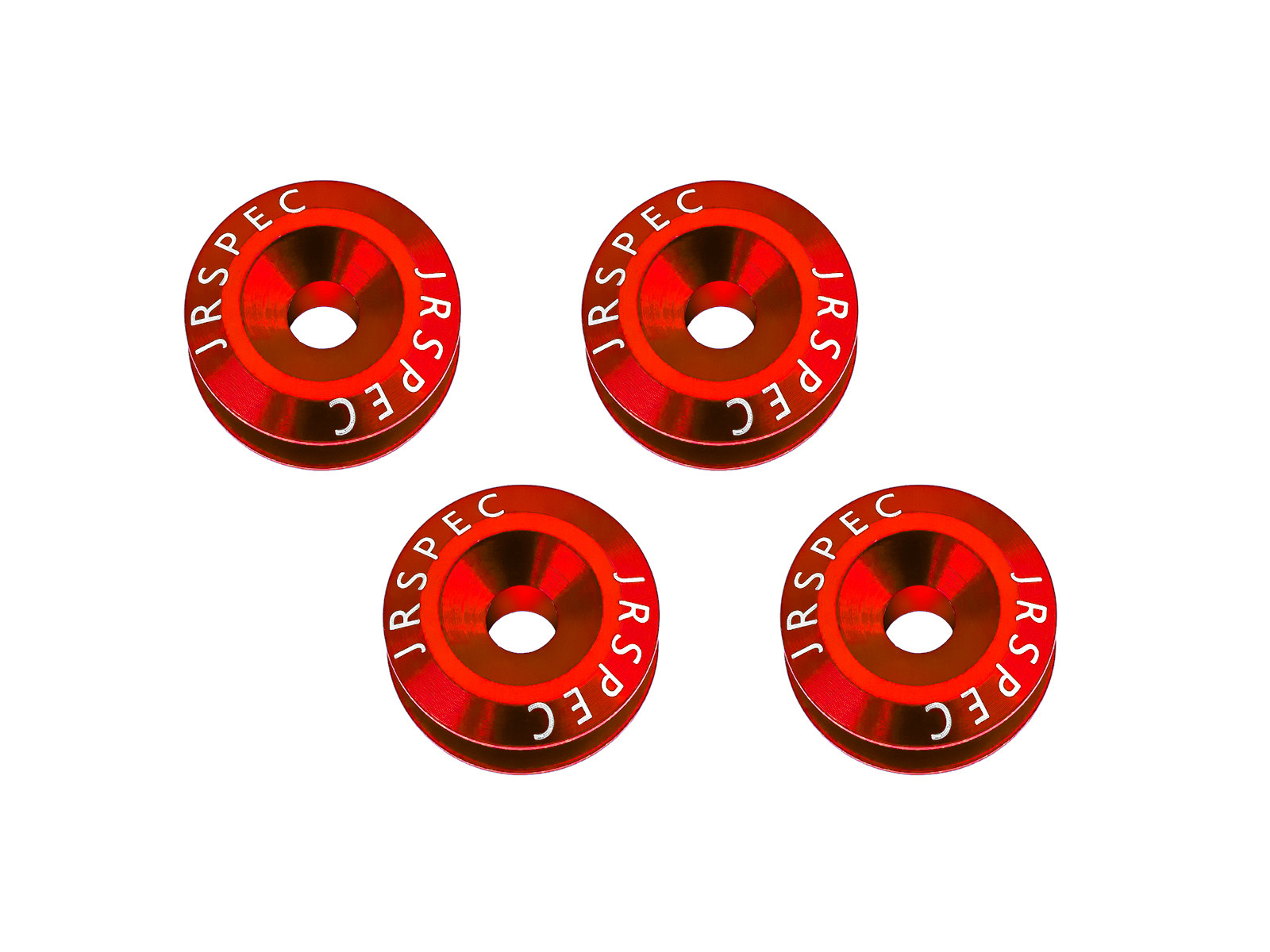 Uniwersalne zapinki marki JRspec wykonane z aluminium o średnicy 24mm. Umożliwiają szybki montaż i demontaż np. zderzaka poprzez połączenie dwóch aluminiowych adapterów gumką. Mogą być zastosowane do maski, klapy, zderzaka, itp. W komplecie 4 zapinki, 2 gumki, śruby wraz z nakrętkami i podkładkami. Solidna konstrukcja zapewnia bezpieczeństwo i wygodę użytkowania. Przeznaczone są do motorsportu, na obiektach zamkniętych.